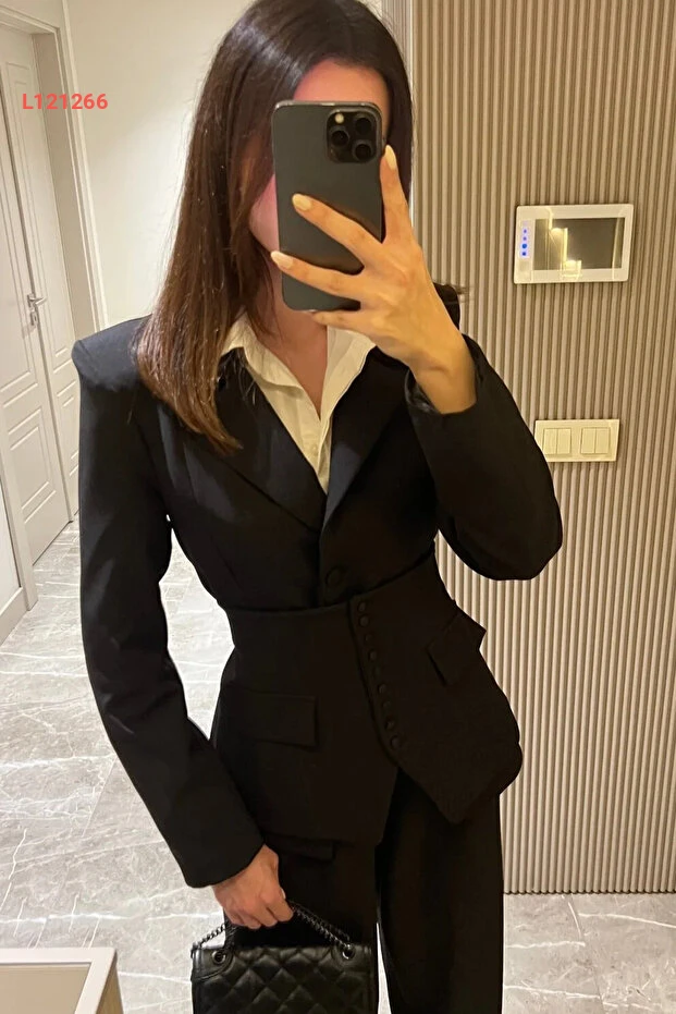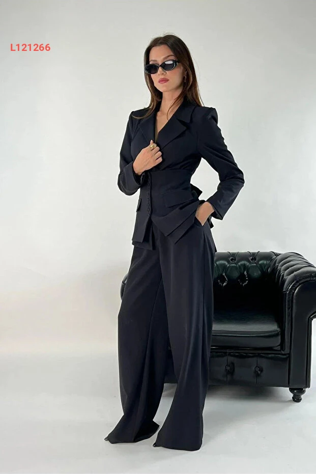استمتعي بإطلالة أنيقة وجذابة مع طقم Klex المكون من جاكيت بلزر، كورس، وبنطال عالِ الخصر باللون الأسود. يجمع هذا الطقم بين الراحة والموضة، حيث ينسجم تصميمه المتقن مع تفاصيله العصرية ليمنحك الثقة والأناقة في كل مناسبة. مثالي للأمسيات الرسمية أو لقاءات العمل، يجعلك تبدين دائماً في قمة التألق.