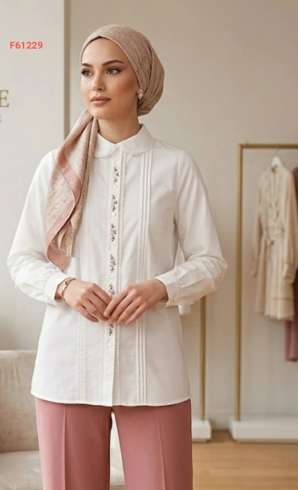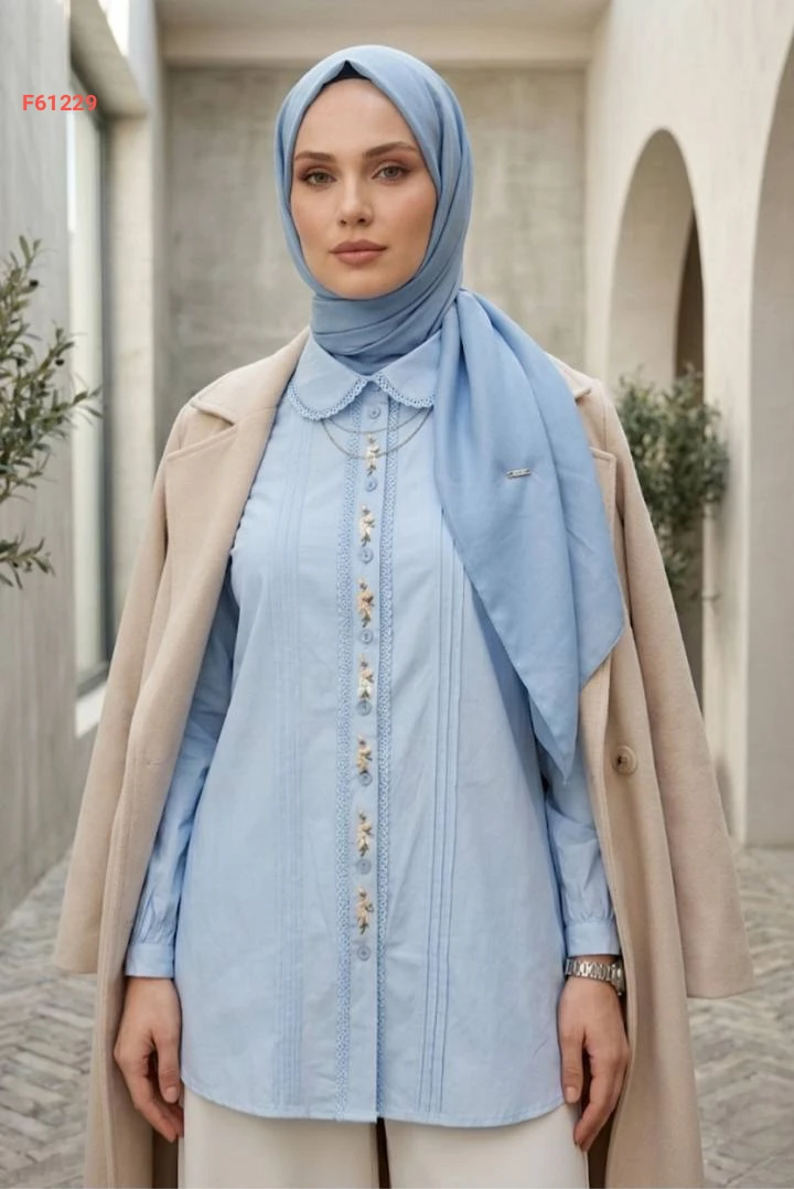 قميص كم طويل مطرز