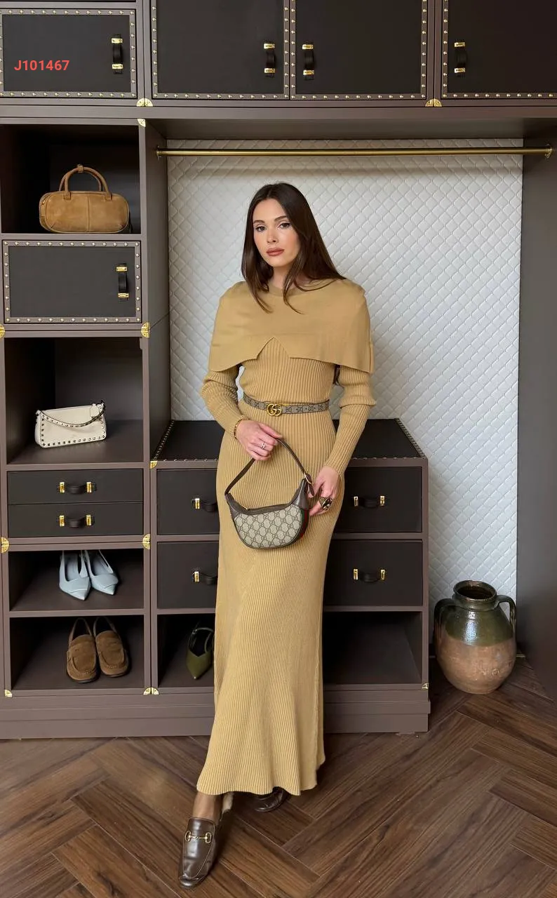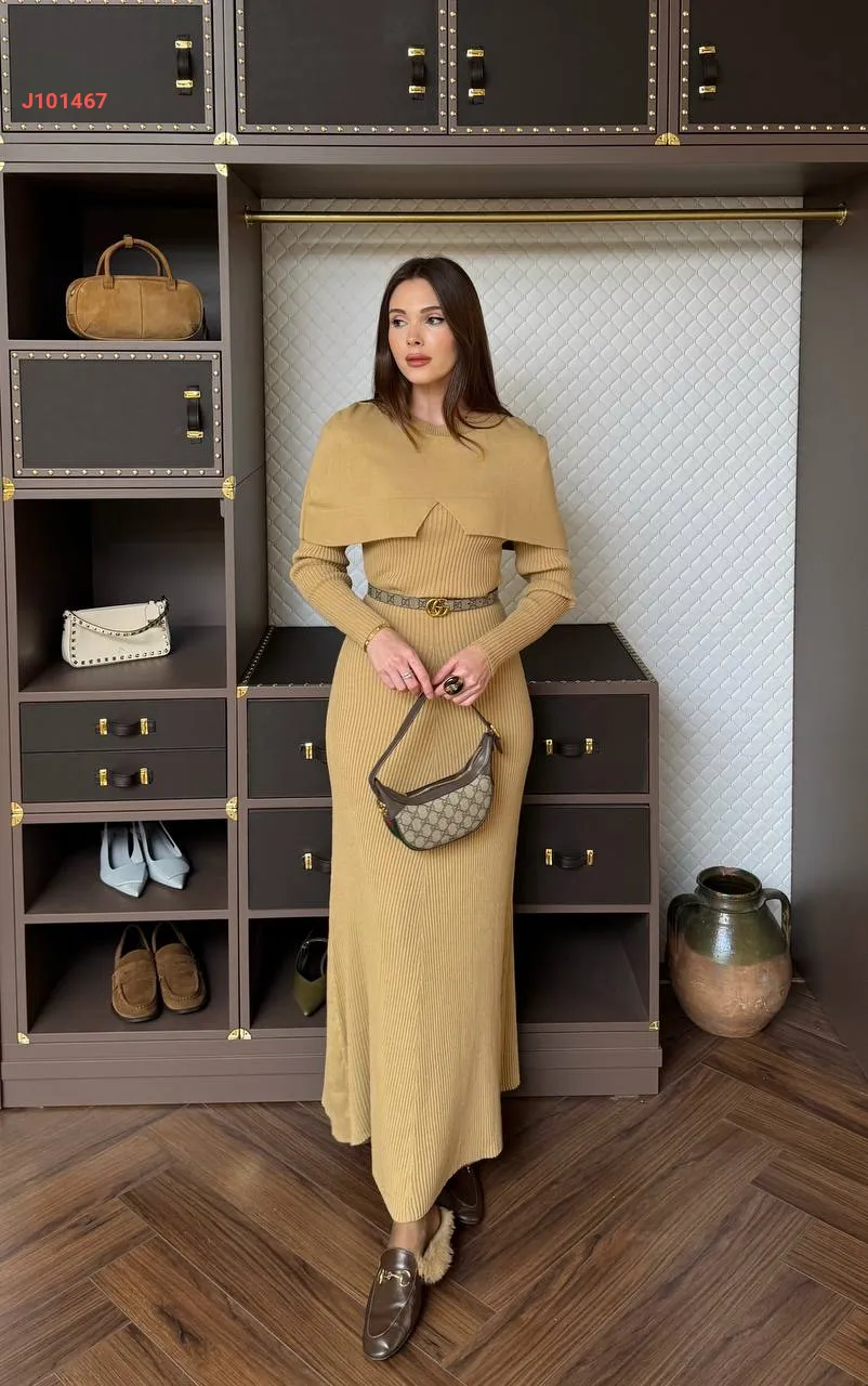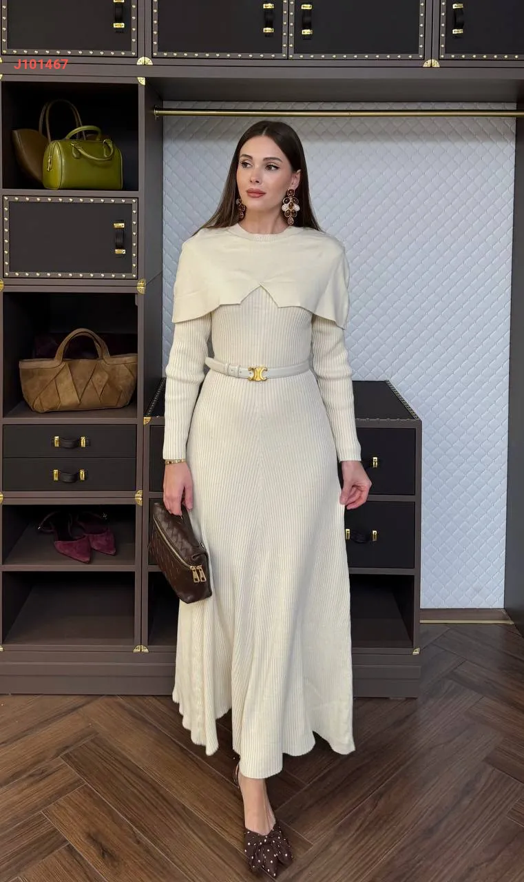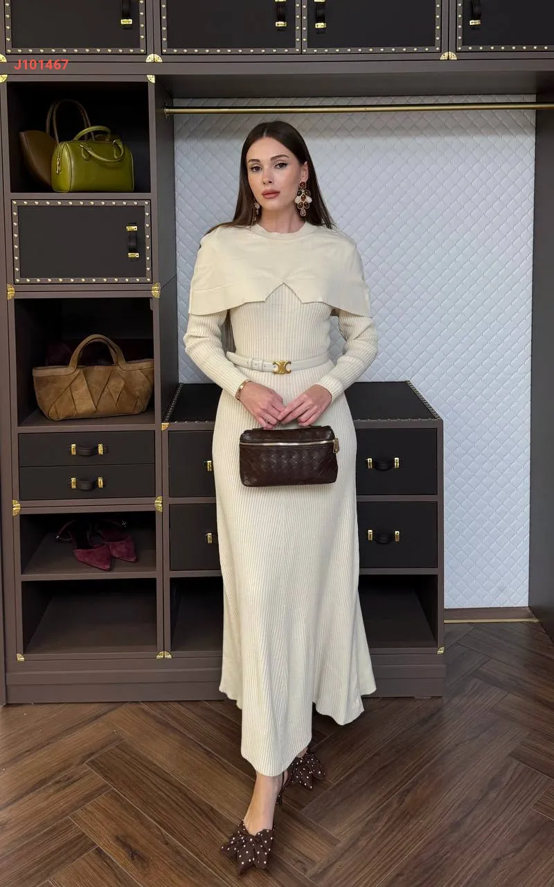ICONIC SERIES DROP-2 IVORY ASİMETRİK YAKA DETAY TRİKO ELBİSE Ürün Kodu: ahl011Ürün Serisi: 1/2