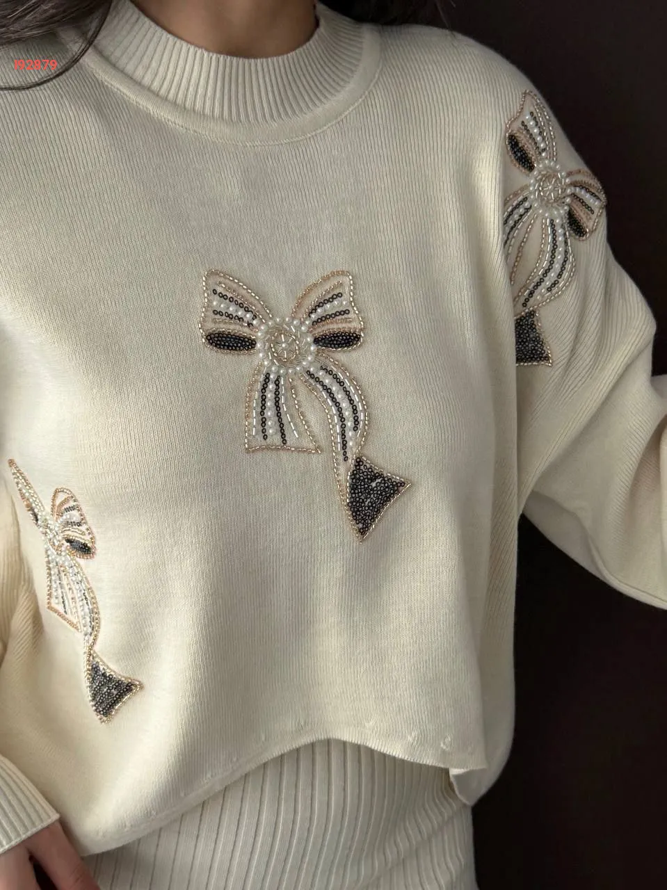 فستان تريكو مع كنزة مطرزة لولو وبريق