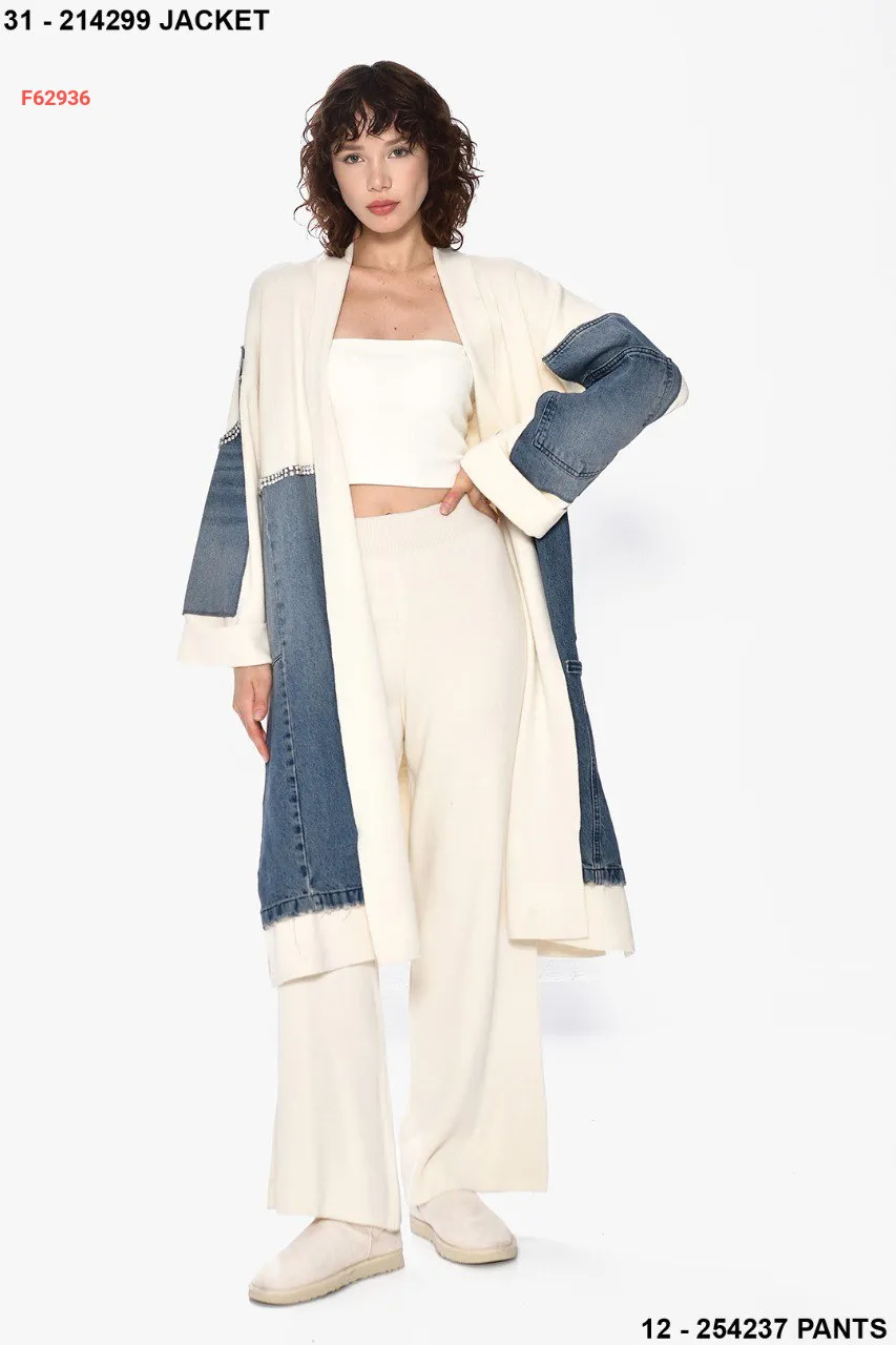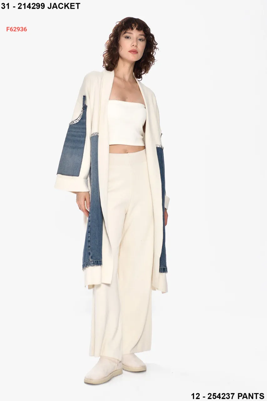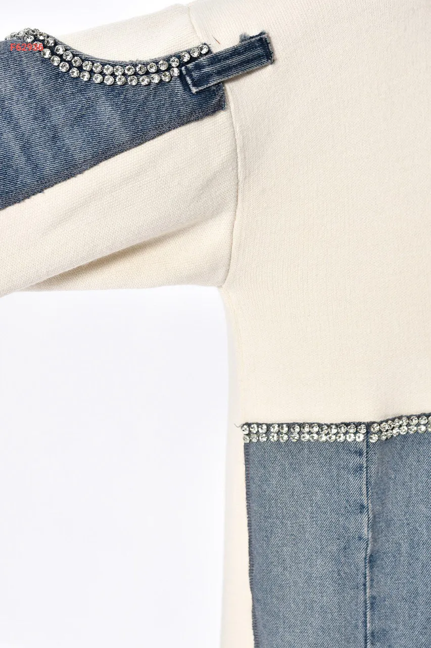 جاكيت تريكو وجينز مزين أحجار