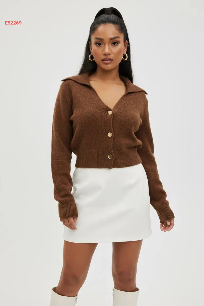 جاكيت تريكو قصير بياقة فرو