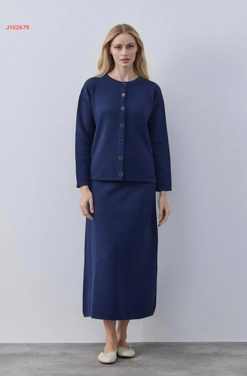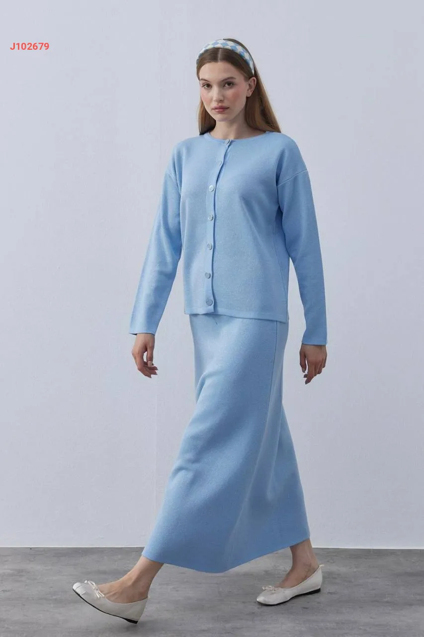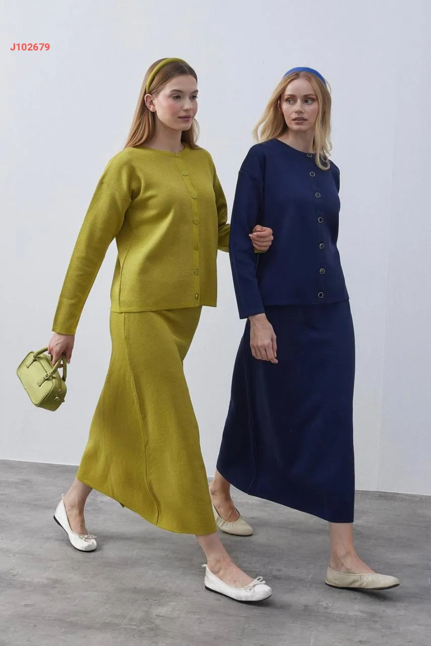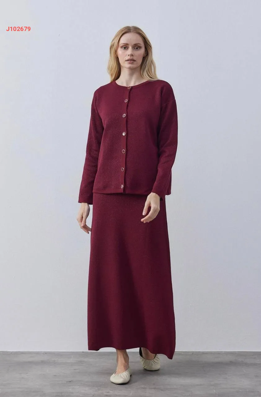 طقم تنورة تريكو طويل مع جاكيت