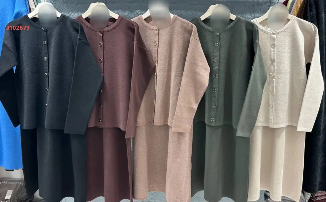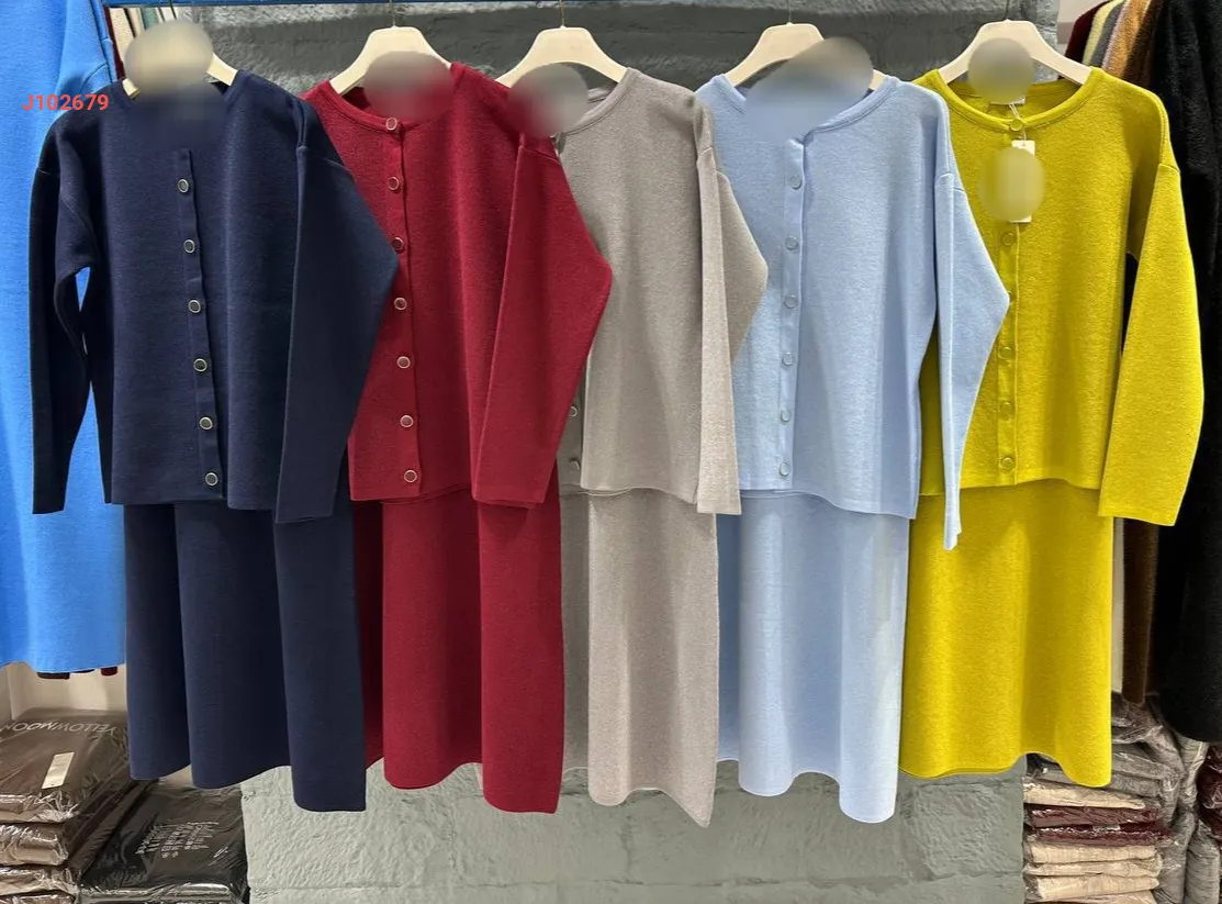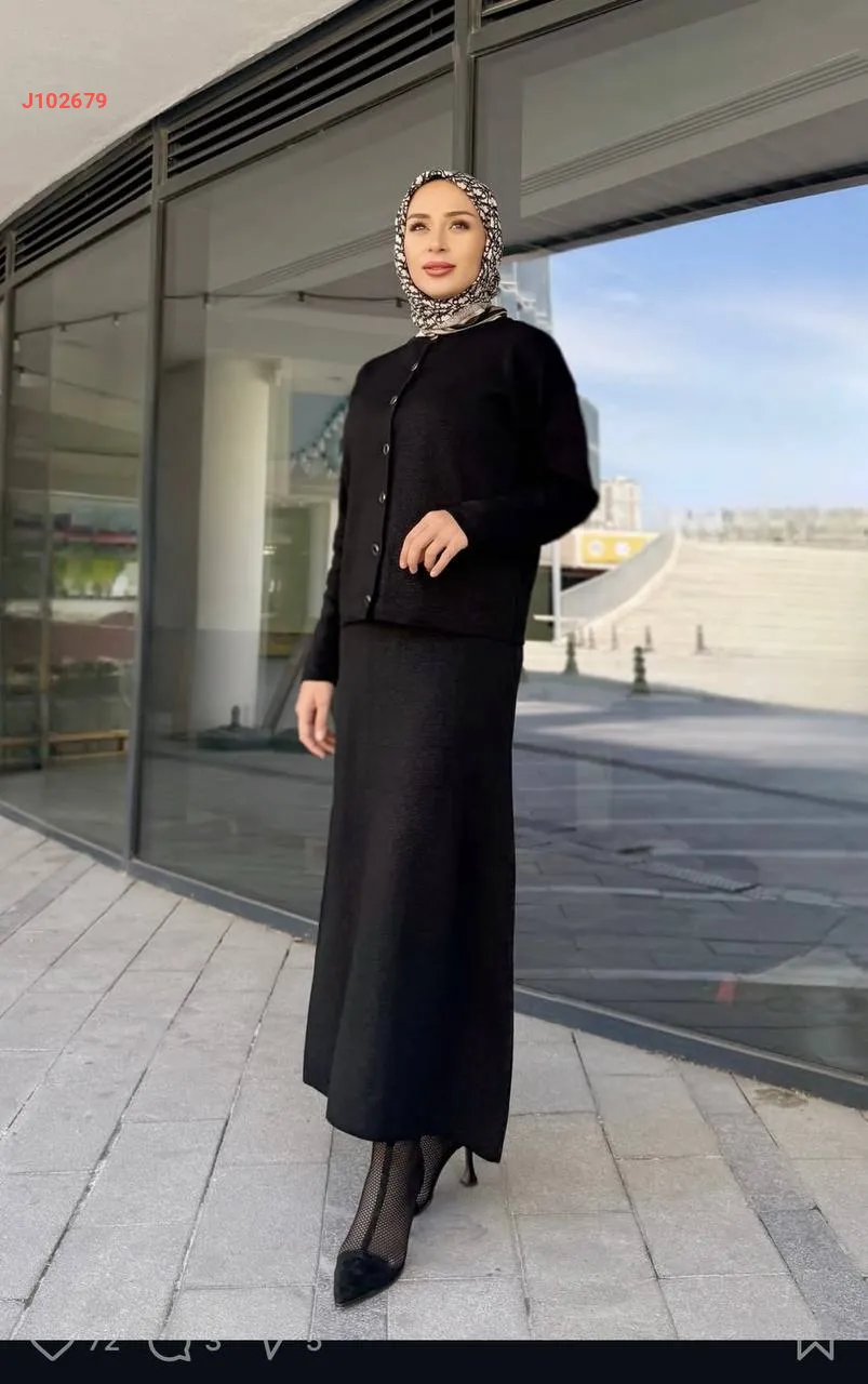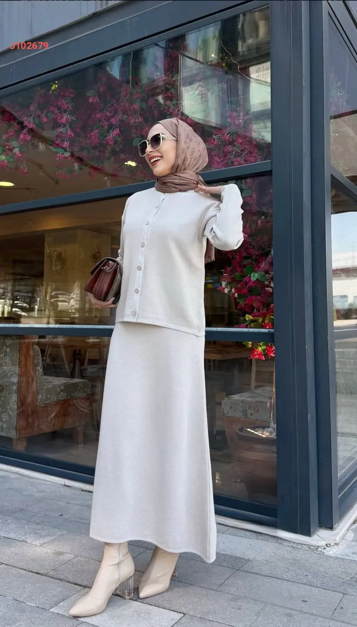طقم تنورة تريكو طويل مع جاكيت