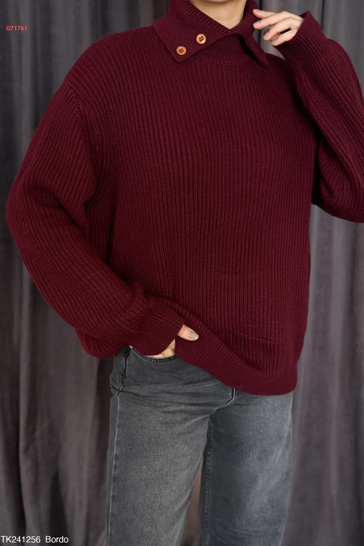 كنزة تريكو بياقة مزينة أزرار