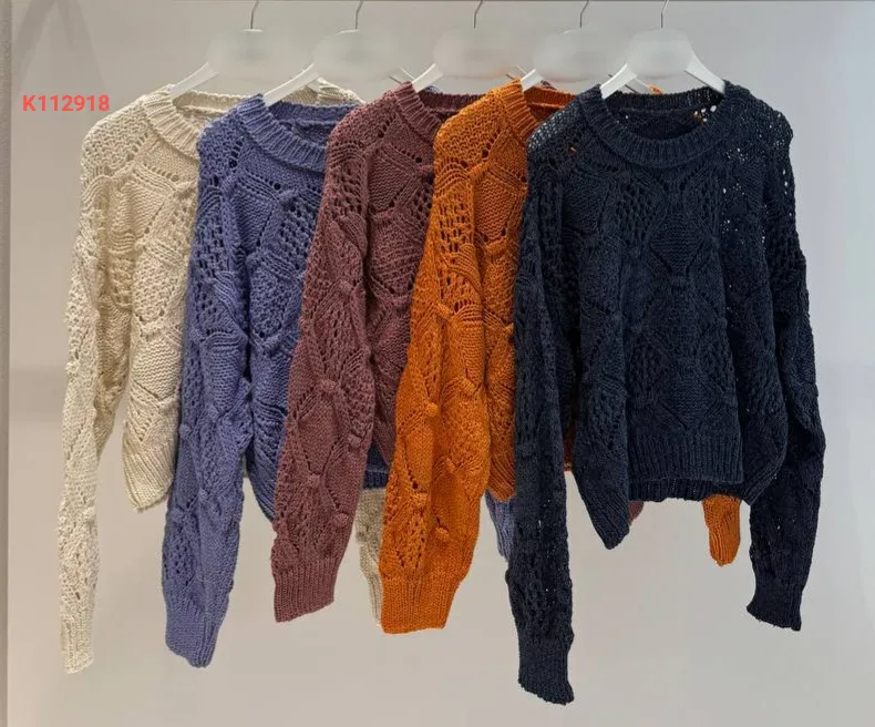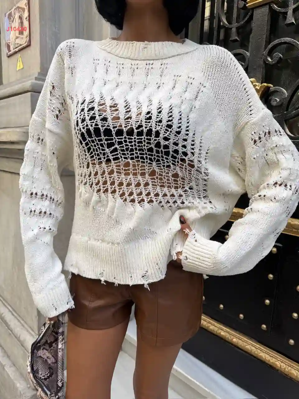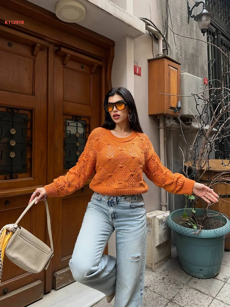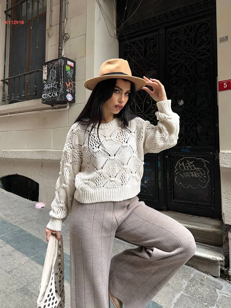 كنزة تريكو منقوشة بتفاصيل مفرغة