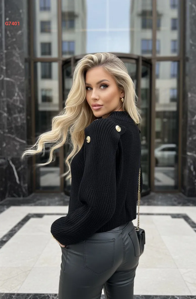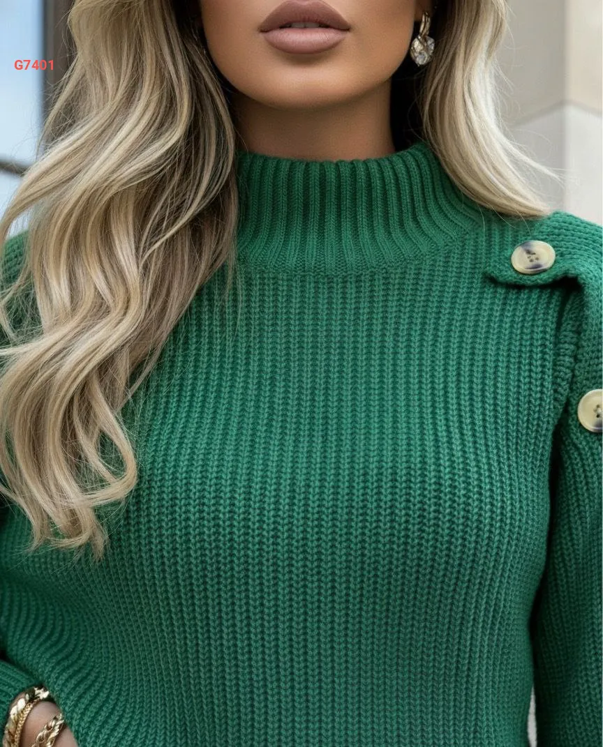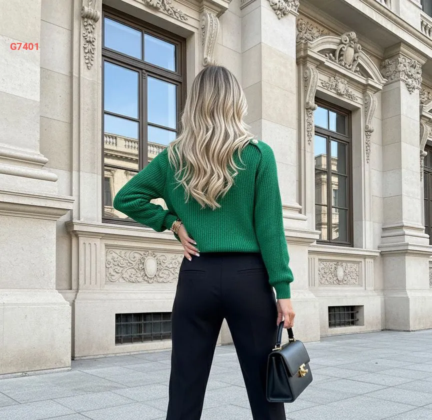 كنزة تريكو بأزرار عالكتف
