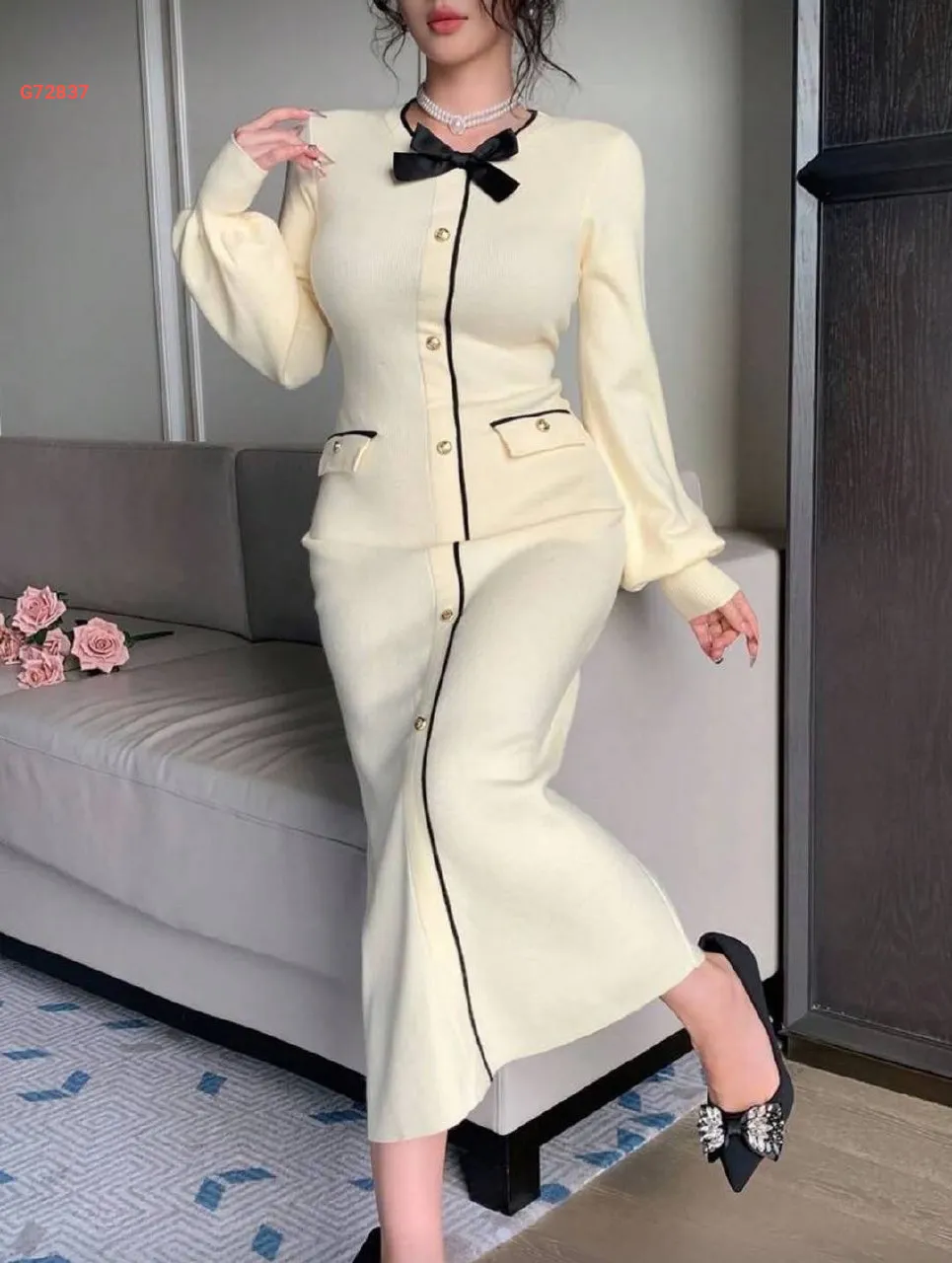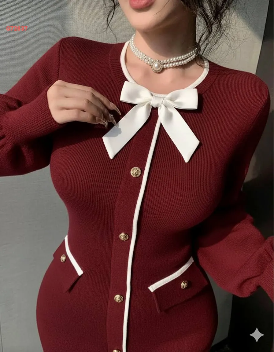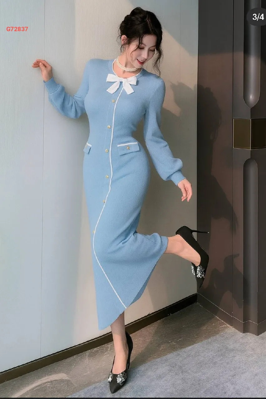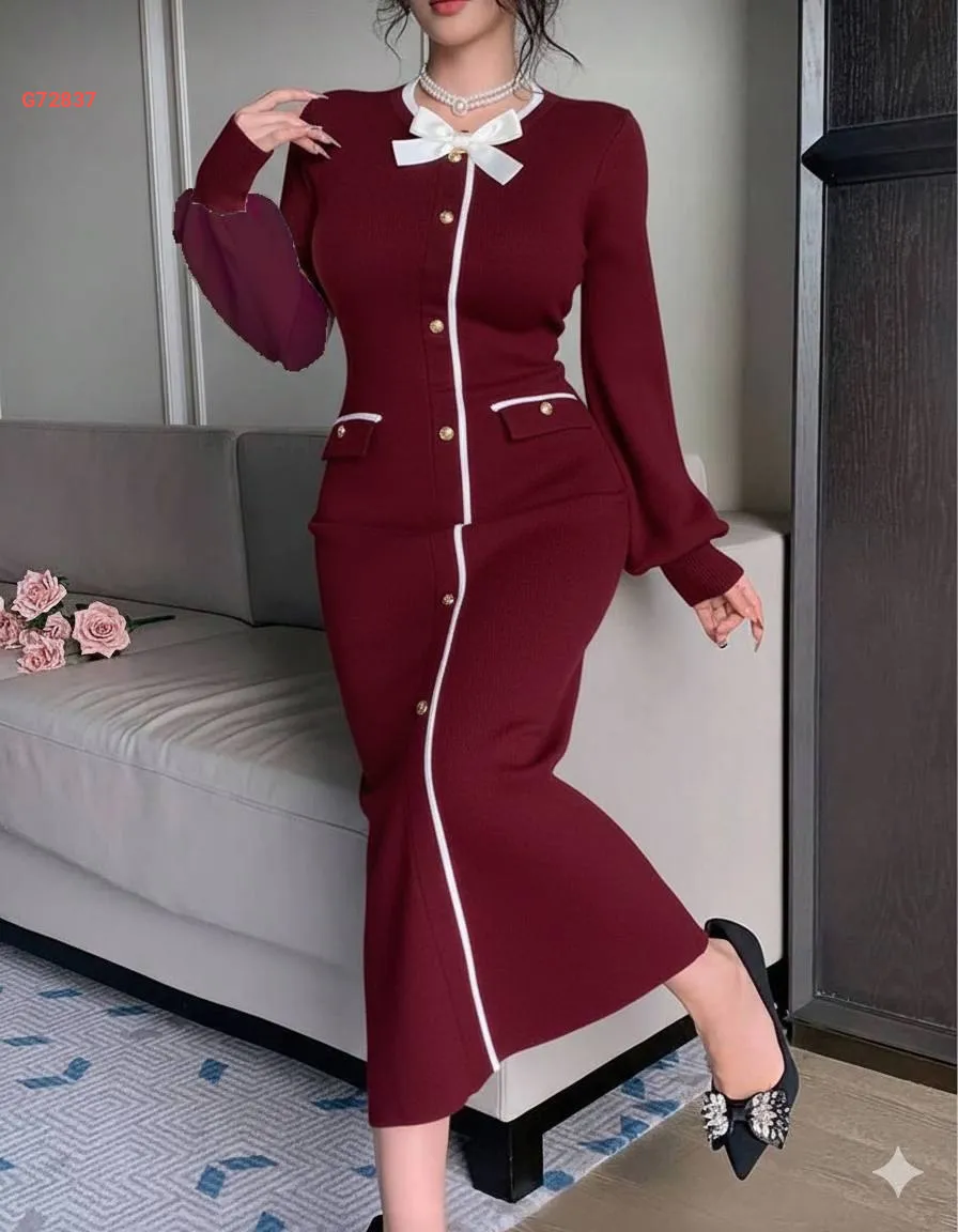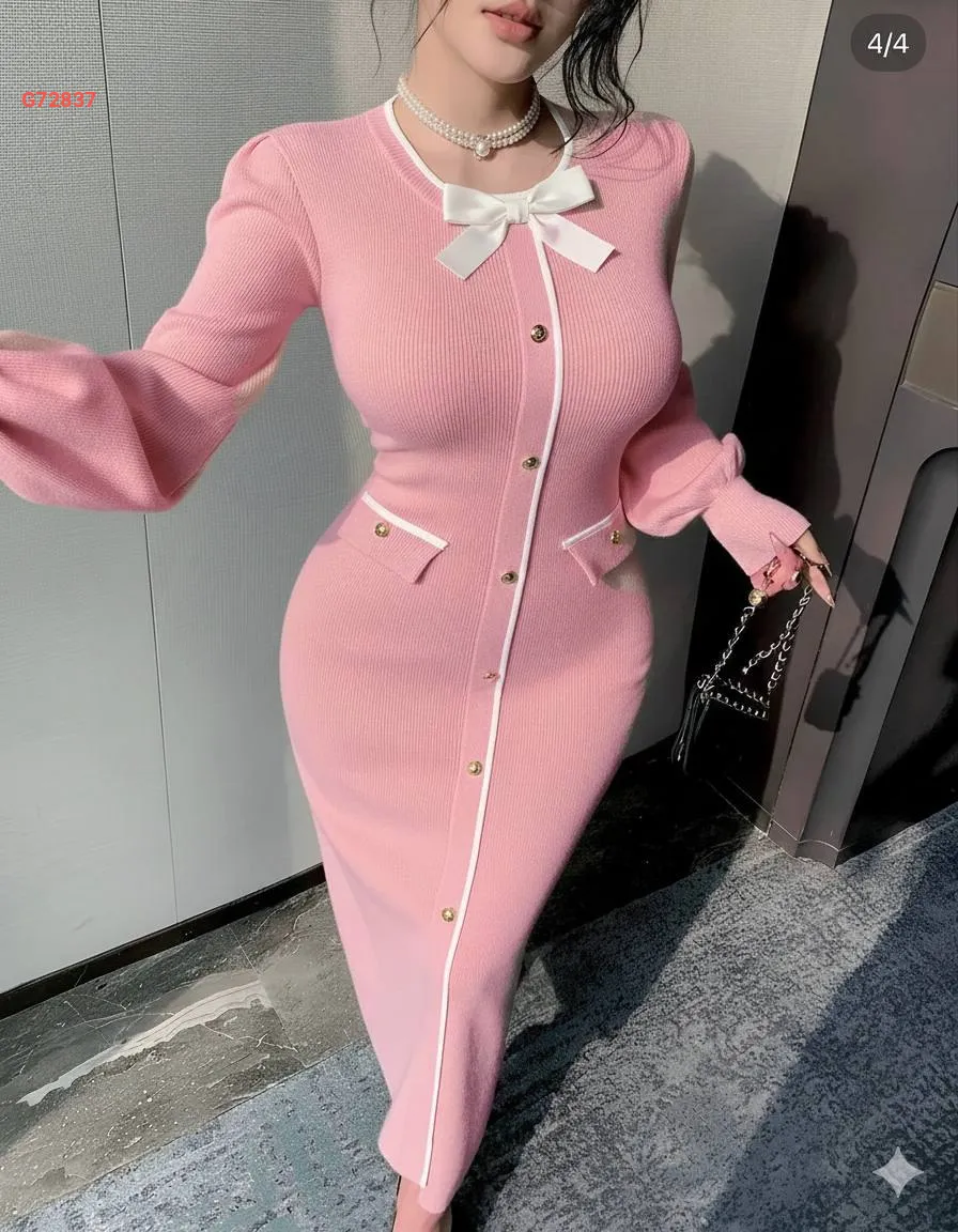 فستان تريكو بأزرار ضيق