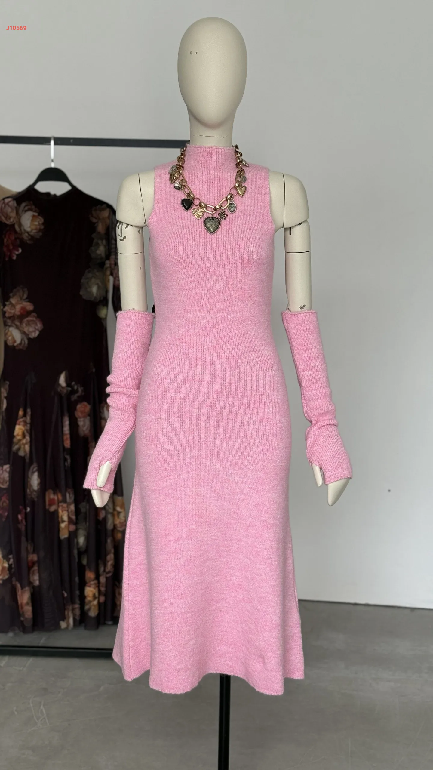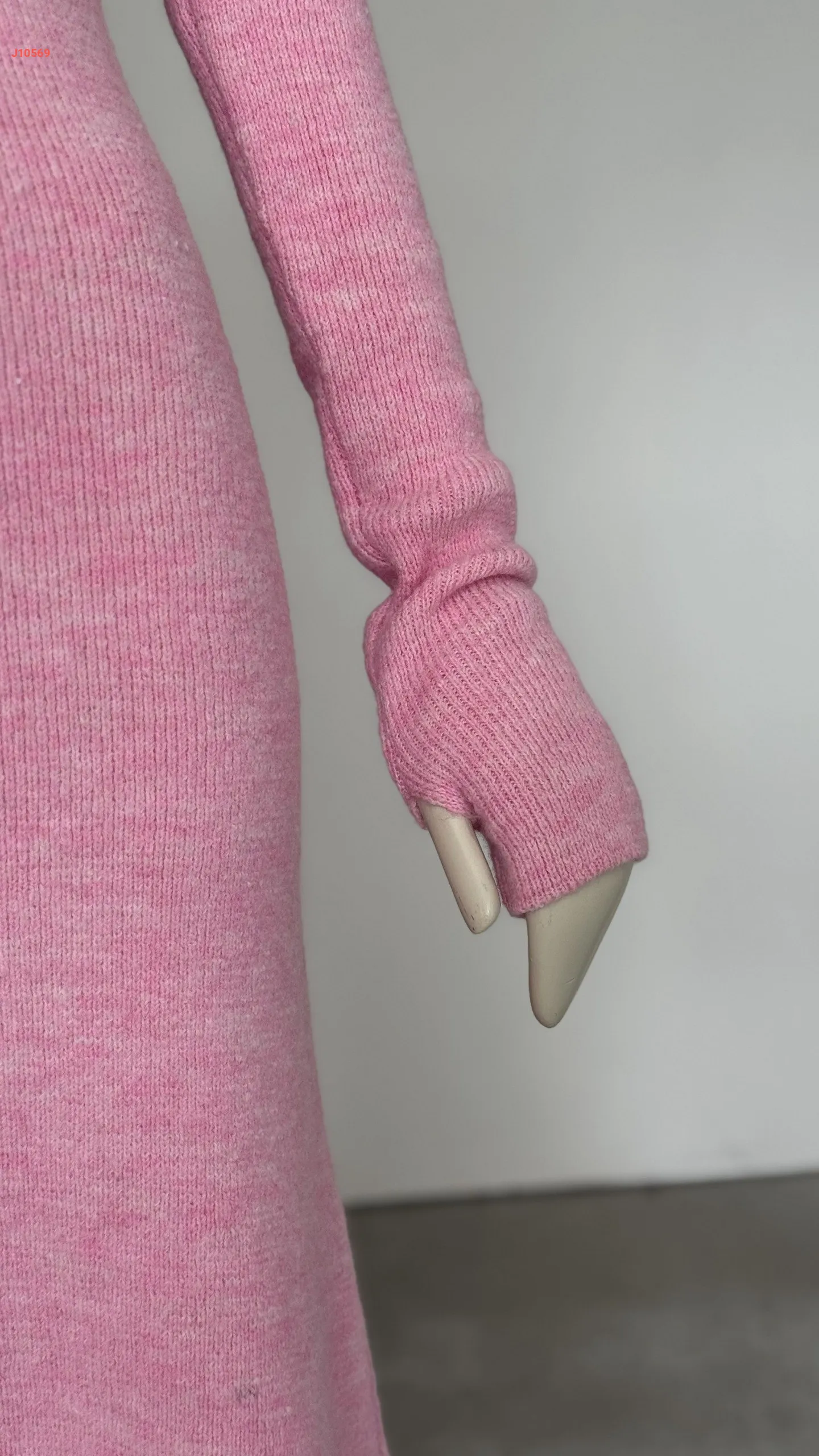 فستان تريكو حفر مع زنود بفتحة إصبع