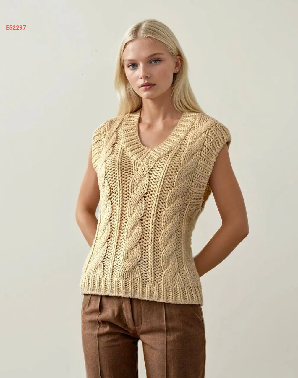 كنزة نص كم صوف مجدول