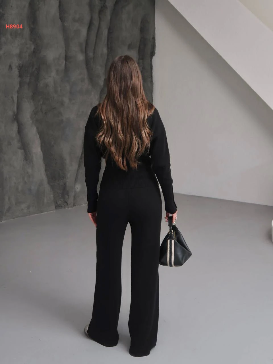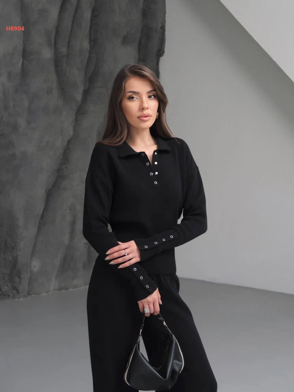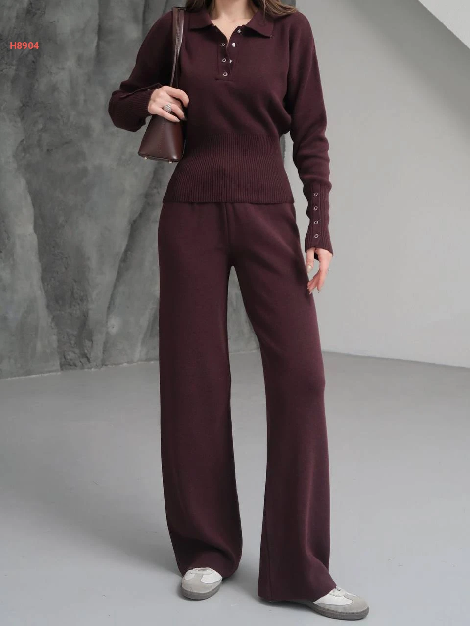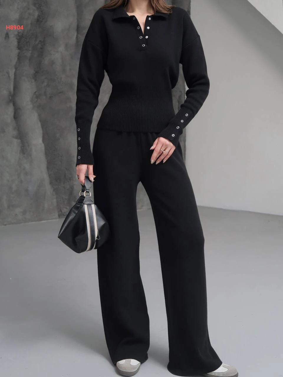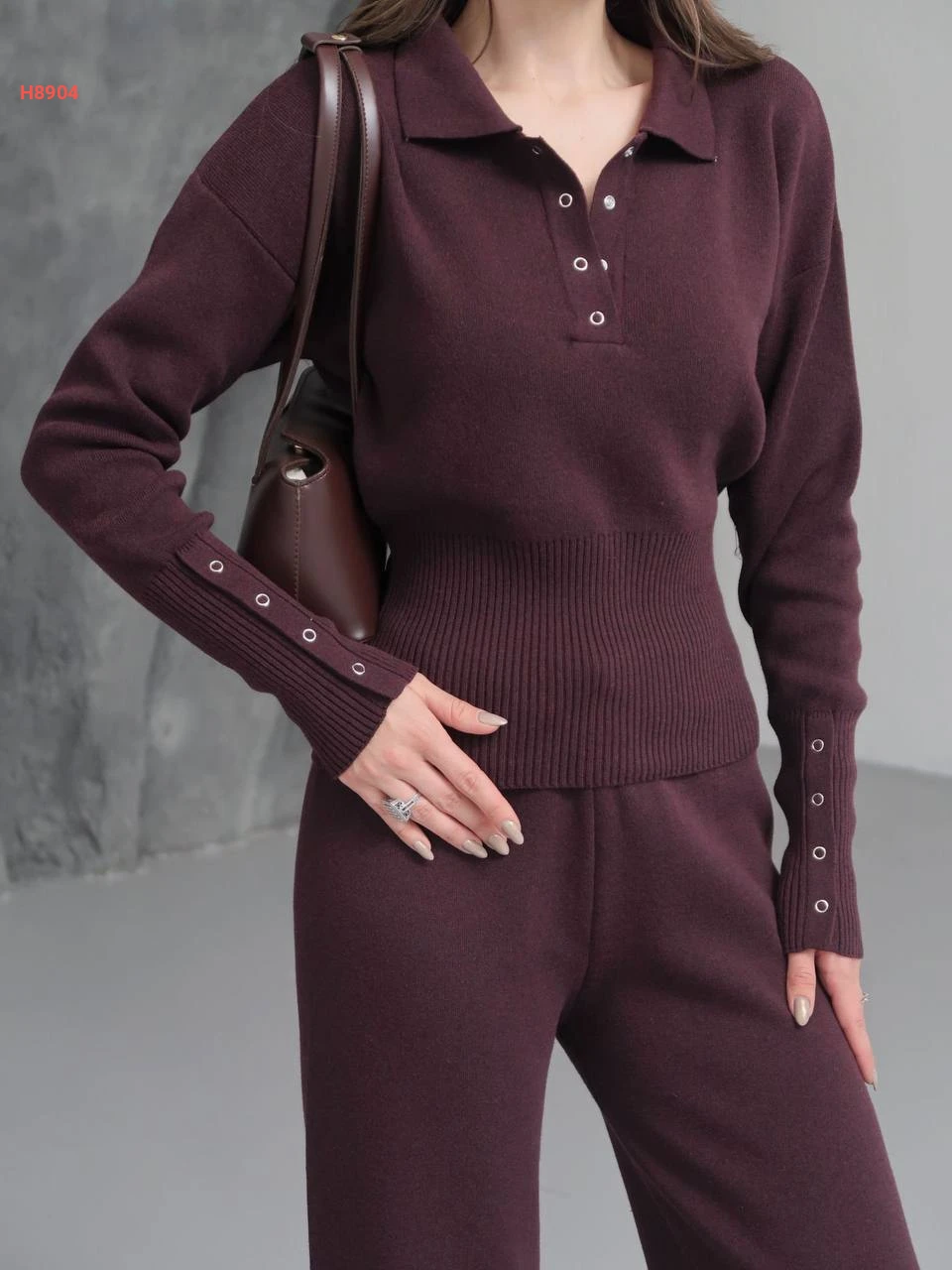 طقم بنطال تريكو وكنزة بأزرار كبس
