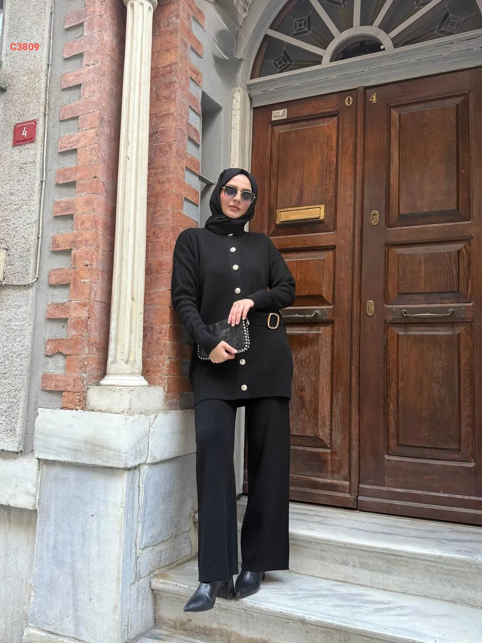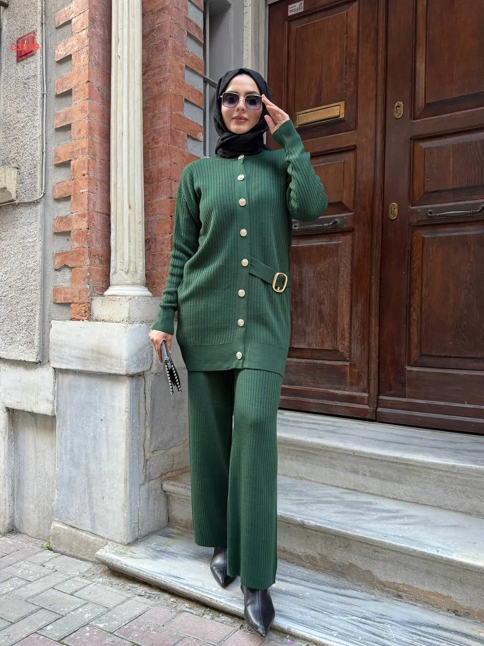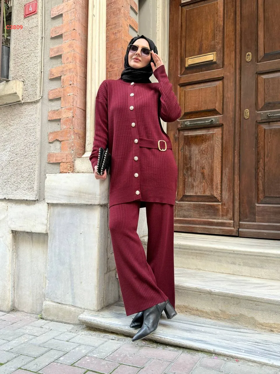 طقم بنطال تريكو وجاكيت بحزام