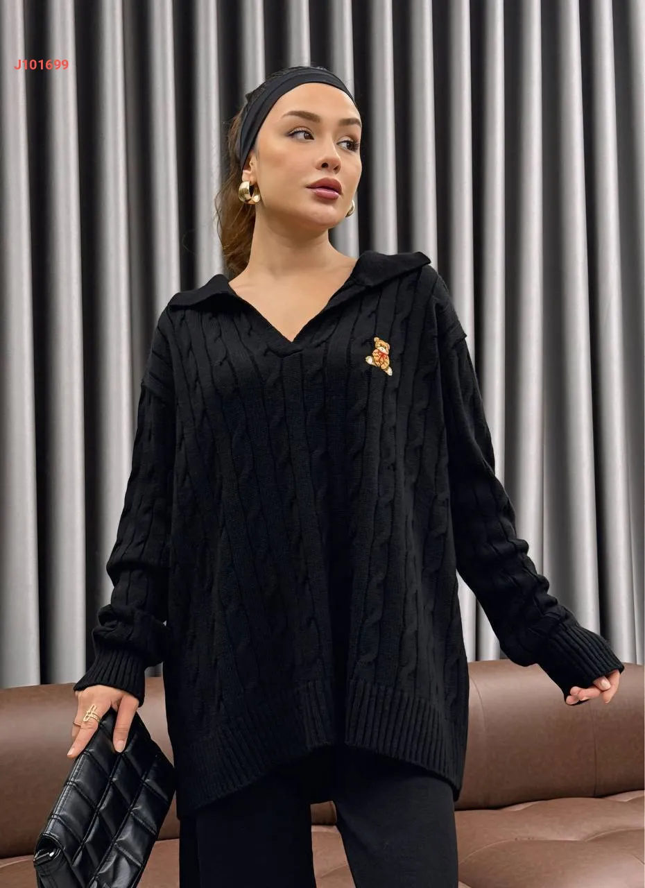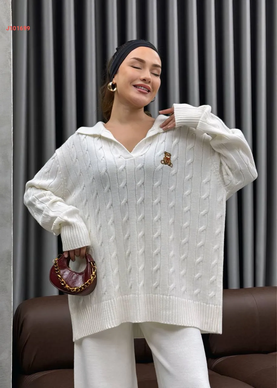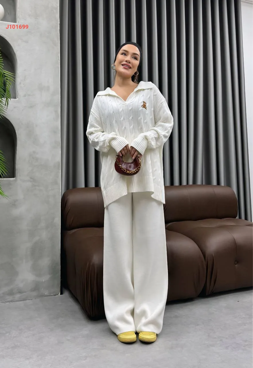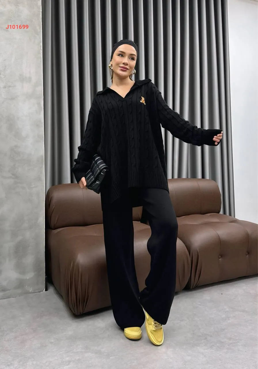 طقم بنطال تريكو وتونيك مجدول