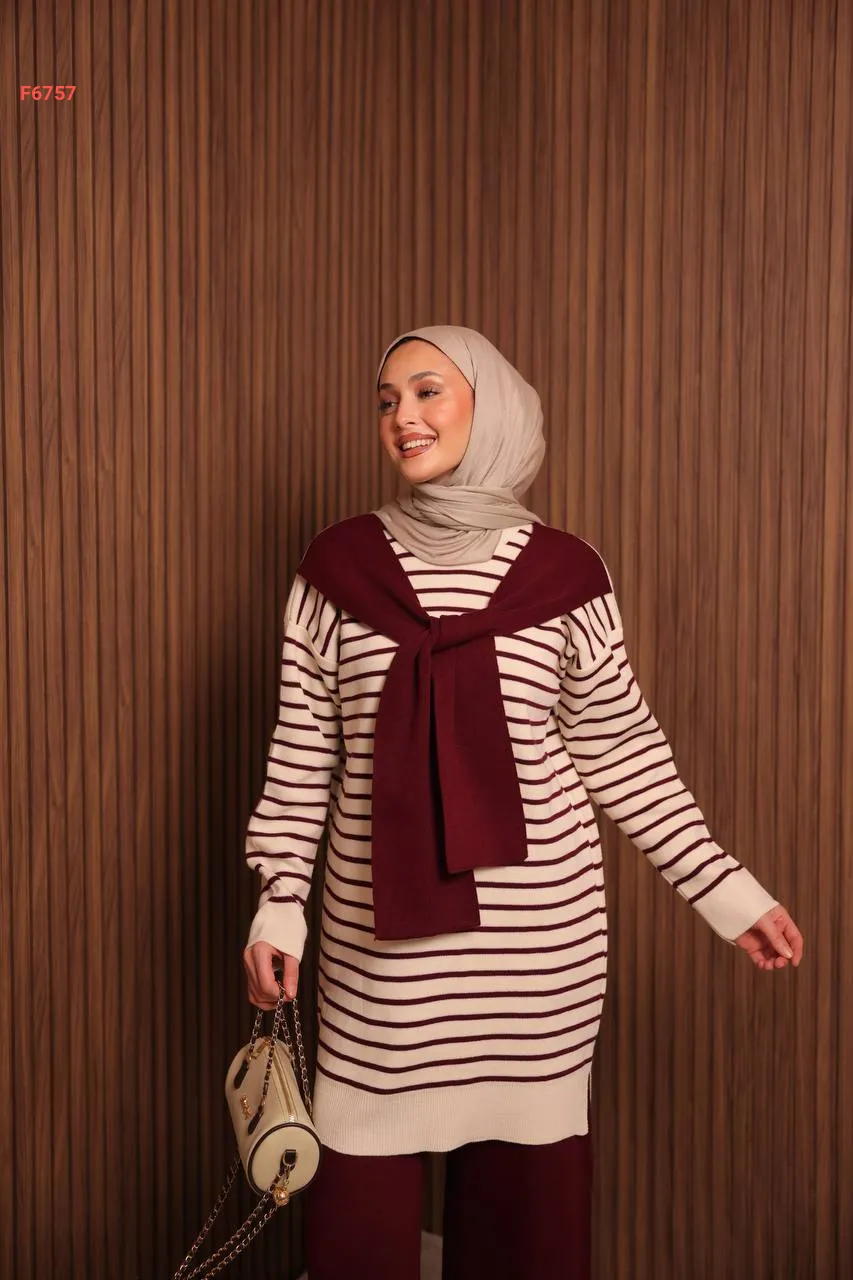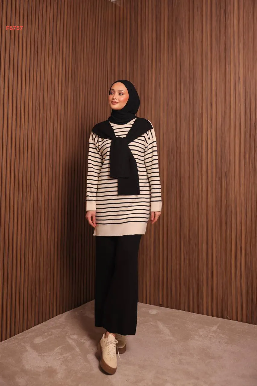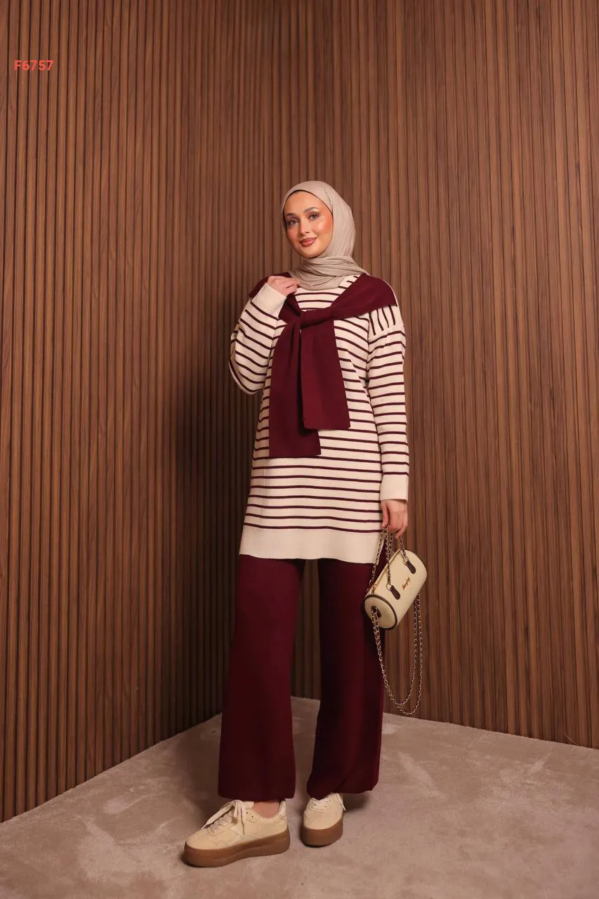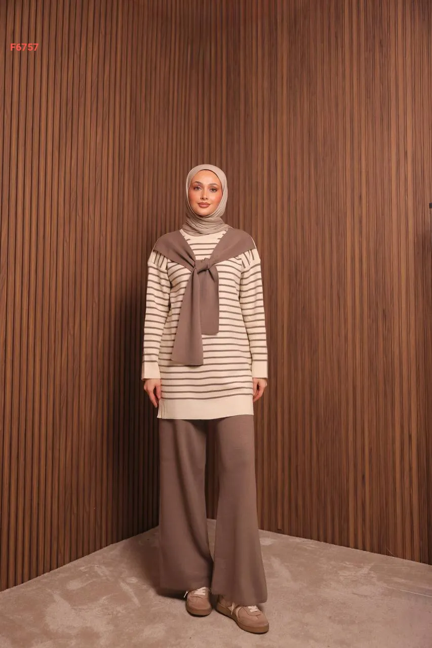 طقم بنطال تريكو وتونيك مخطط بفولار