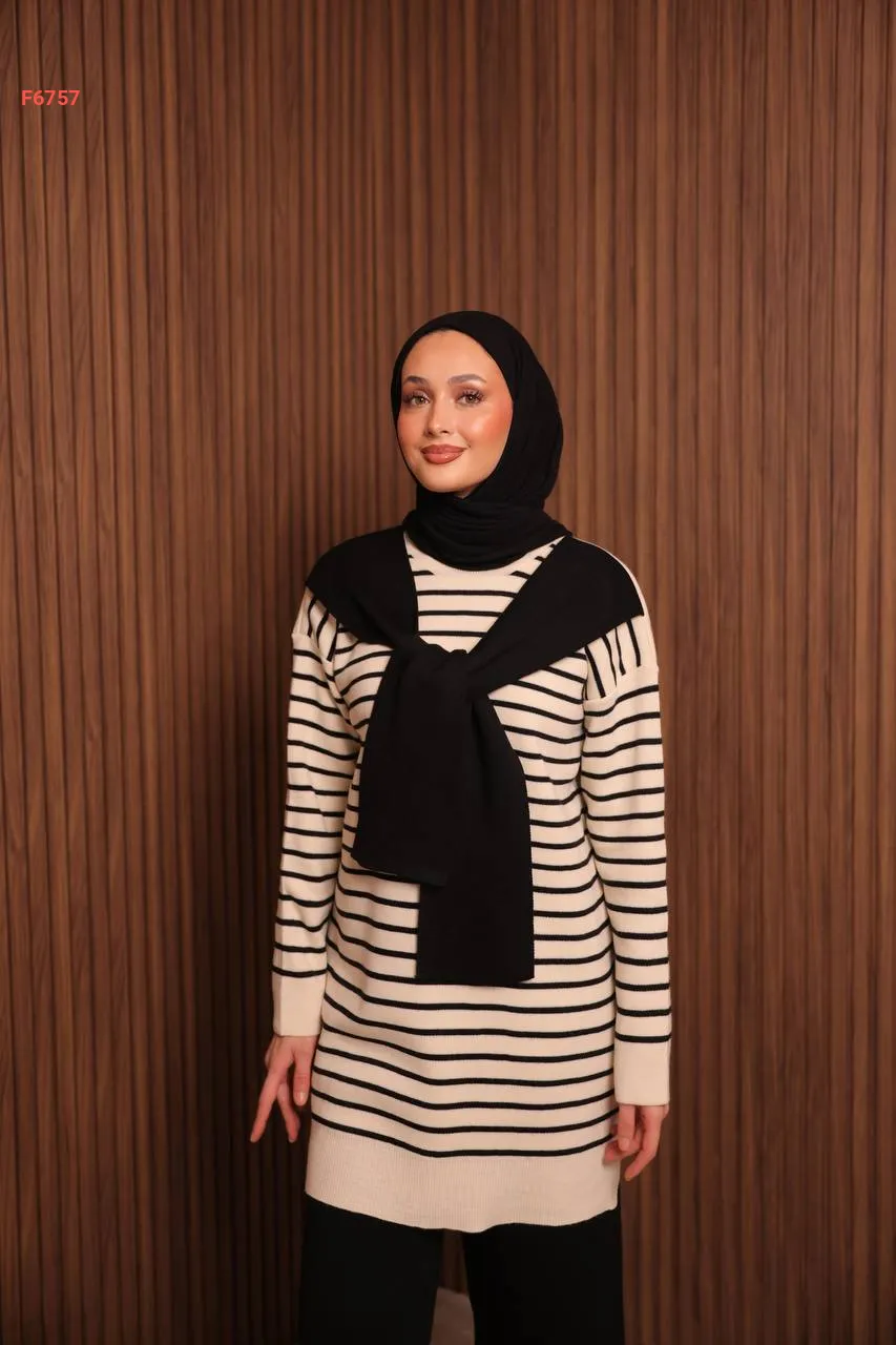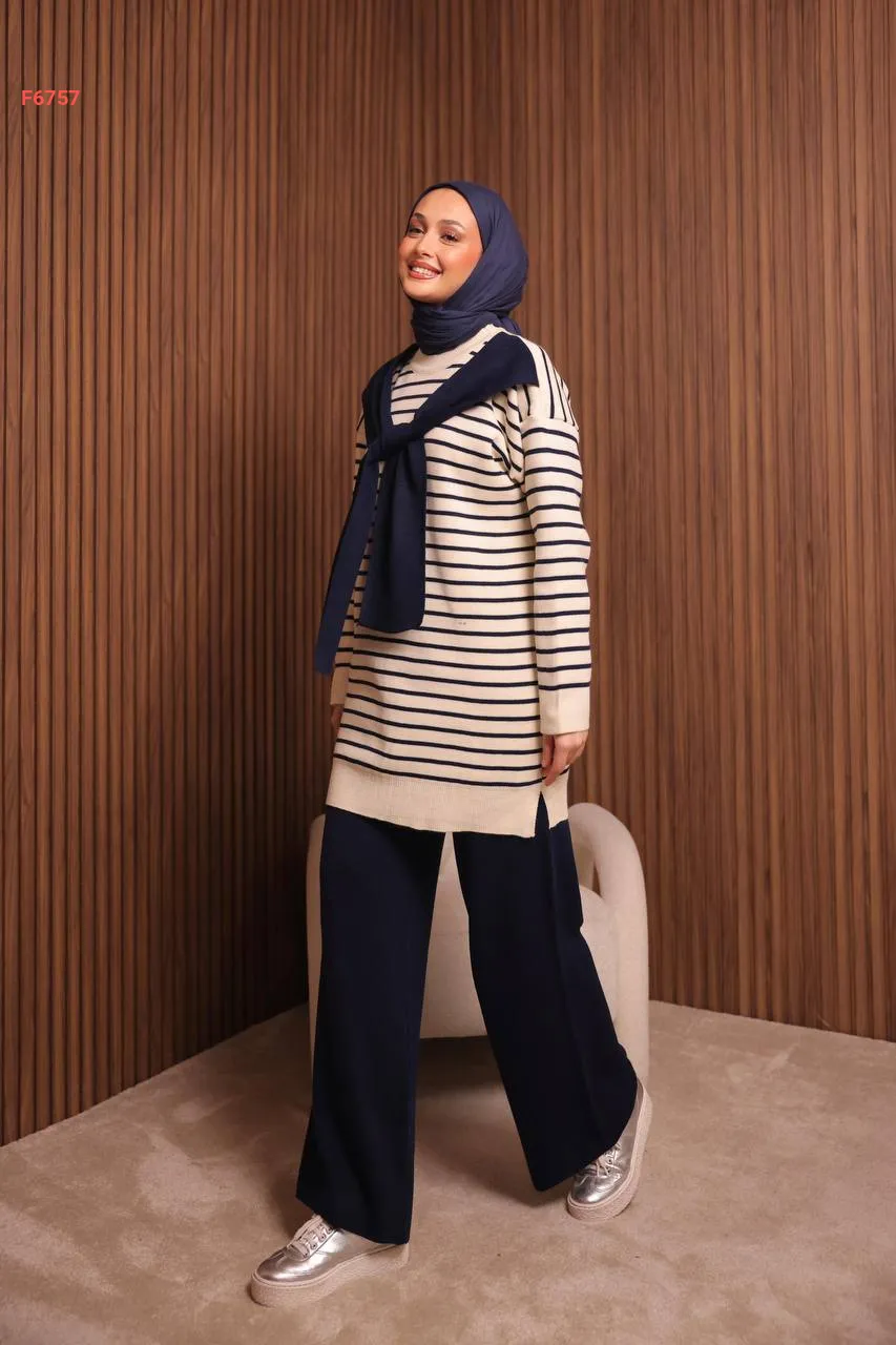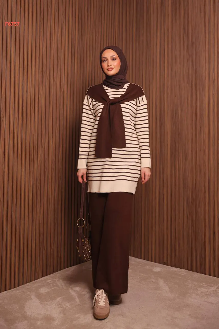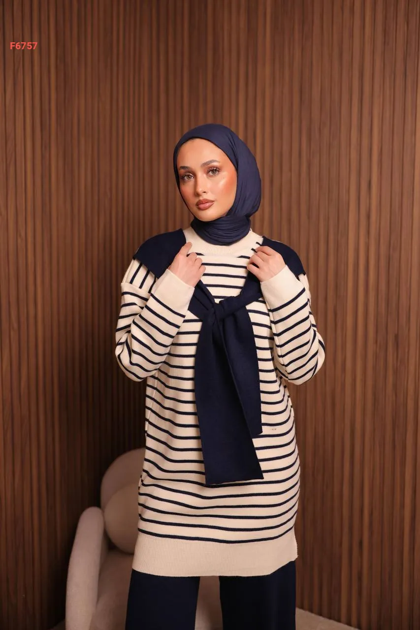 طقم بنطال تريكو وتونيك مخطط بفولار