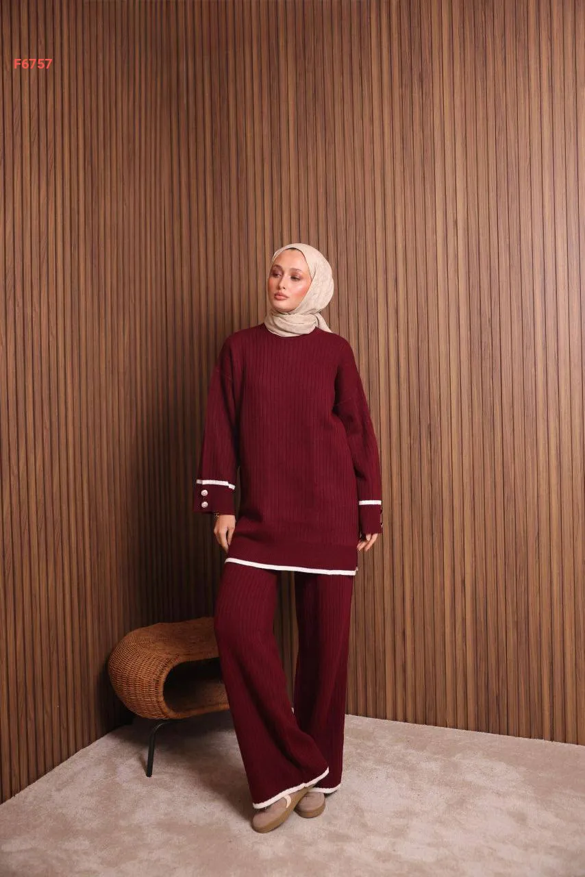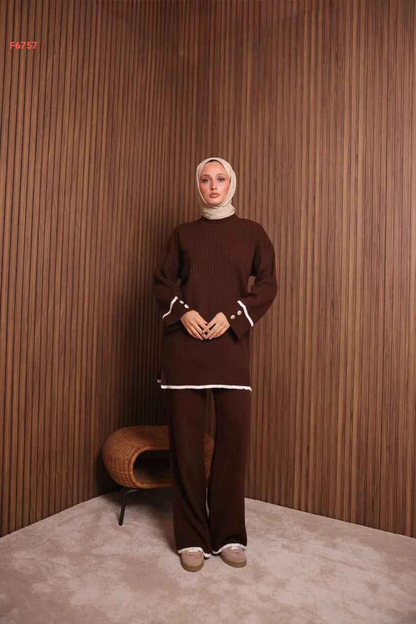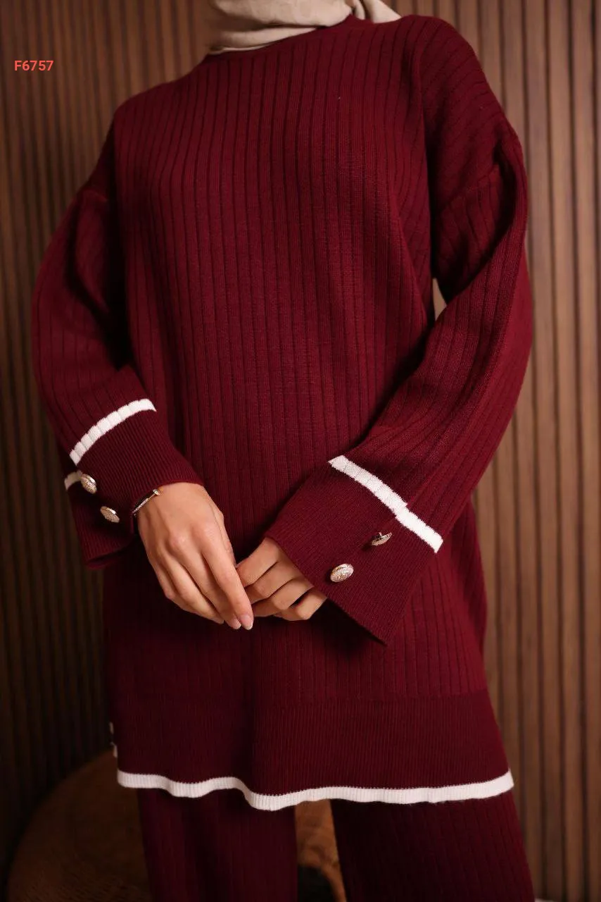 طقم بنطال تريكو وتونيك بأزرار عالكم