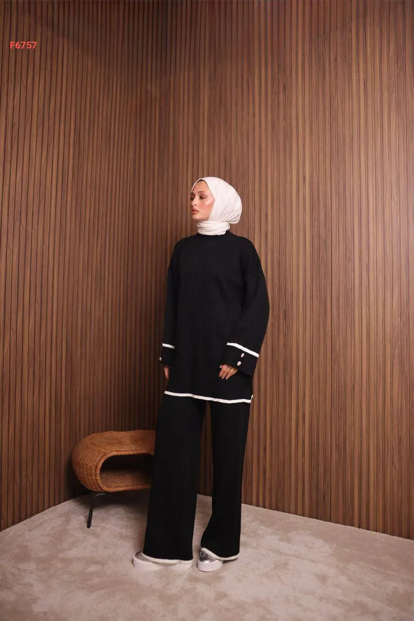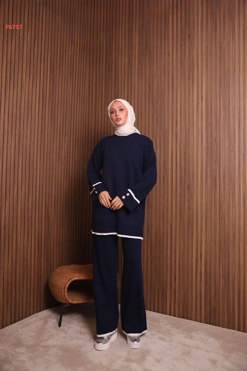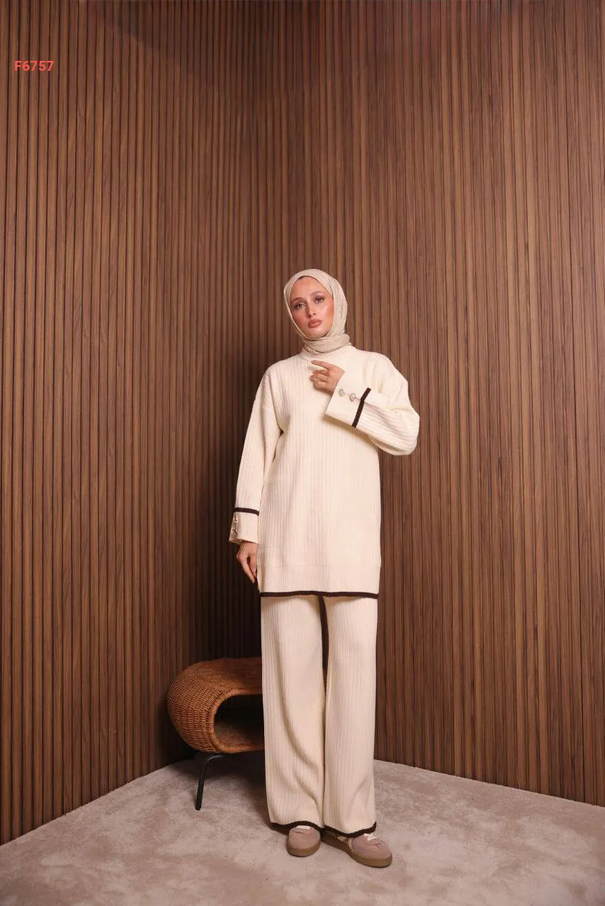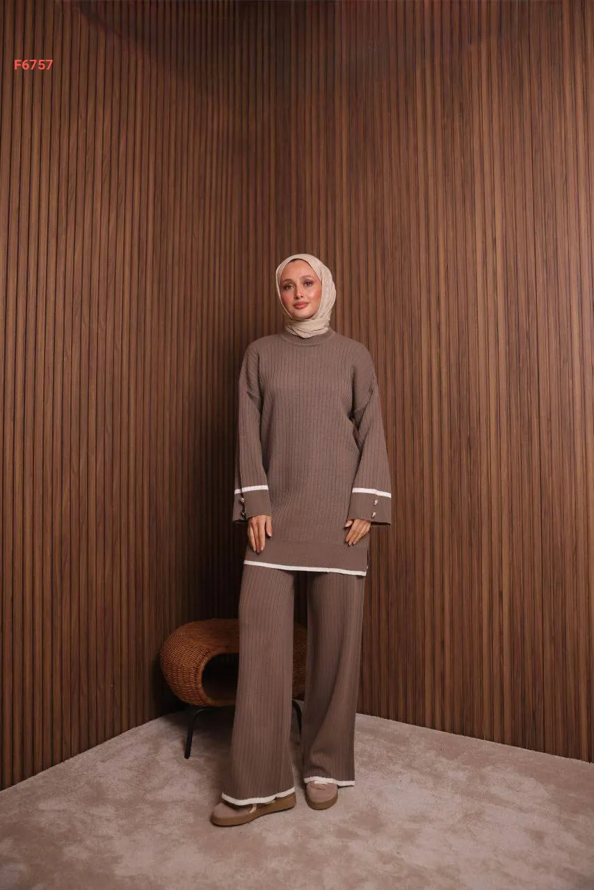طقم بنطال تريكو وتونيك بأزرار عالكم