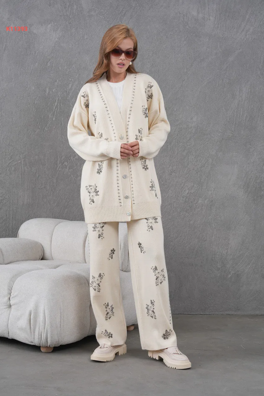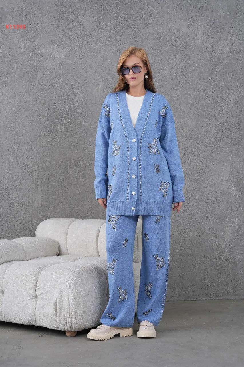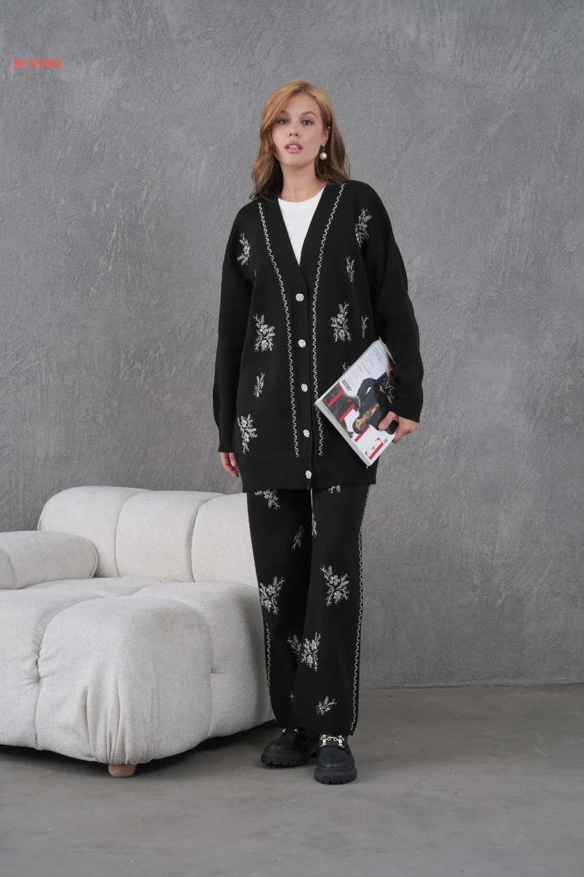 طقم بنطال تريكو وجاكيت مطرز