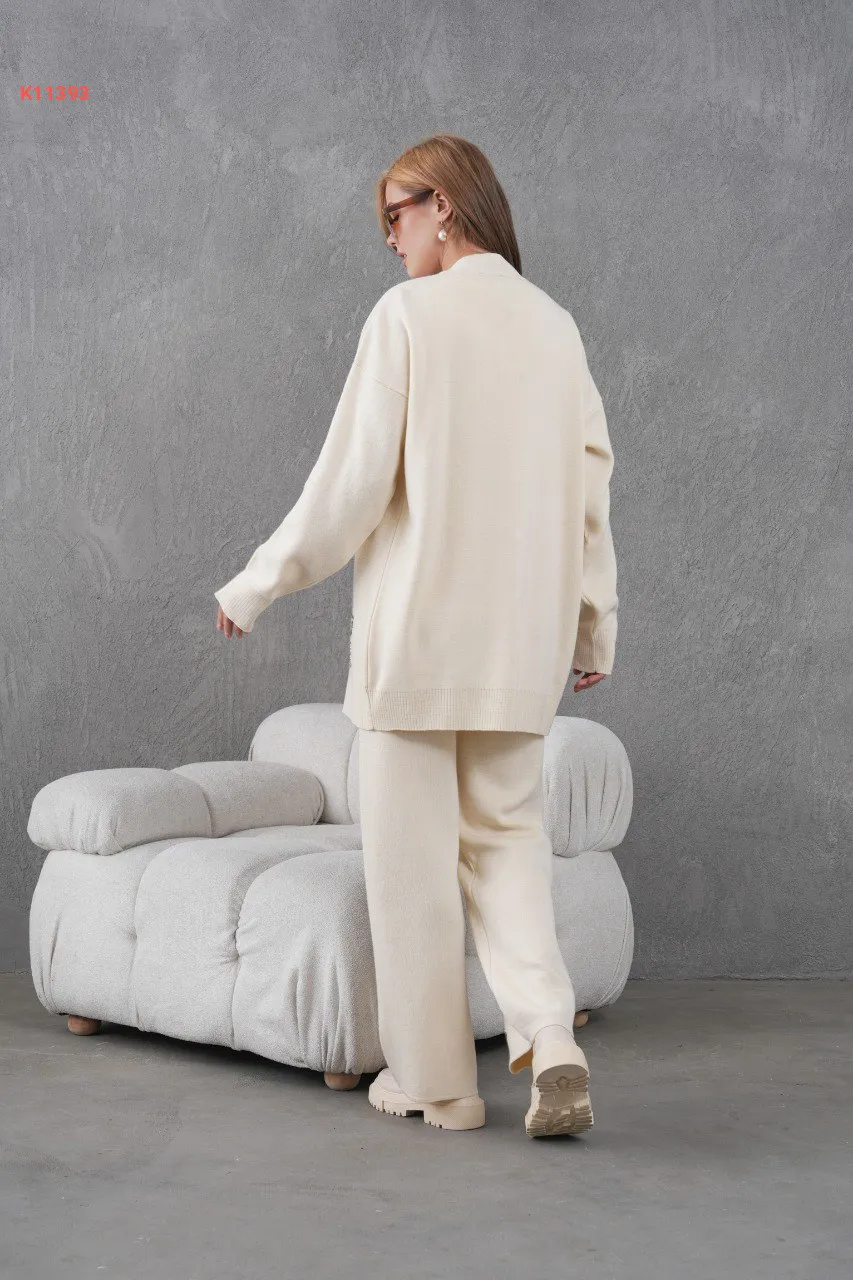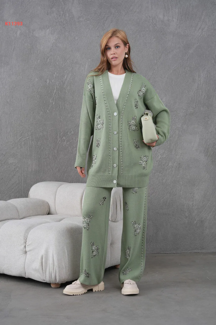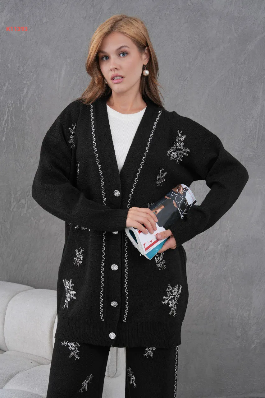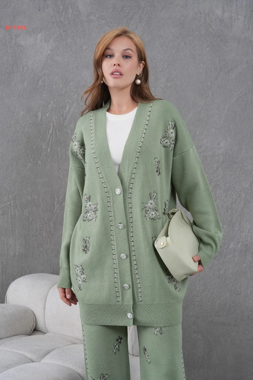 طقم بنطال تريكو وجاكيت مطرز