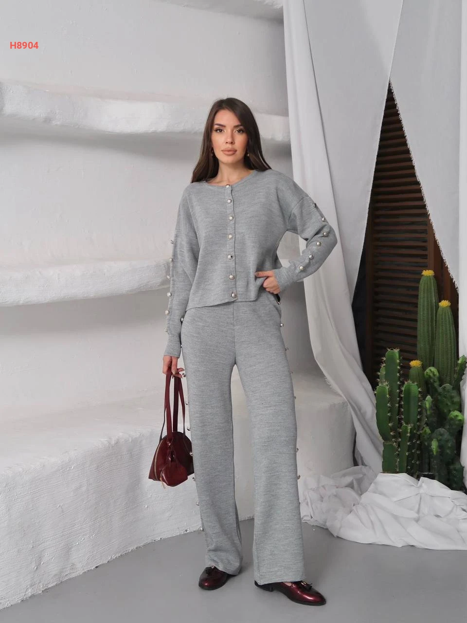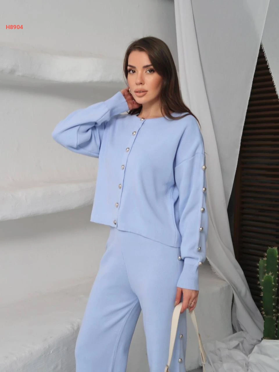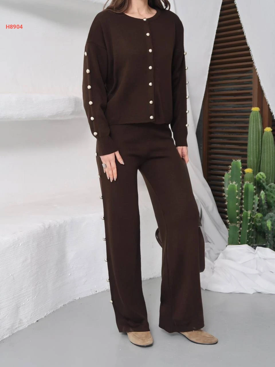 طقم بنطال تريكو وجاكيت بأزرار عالأكمام
