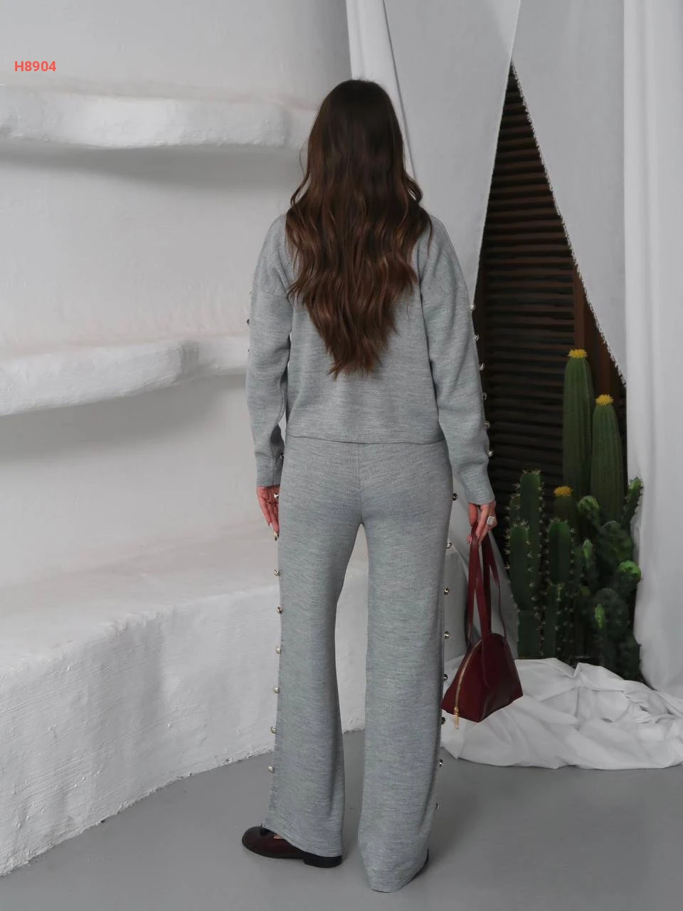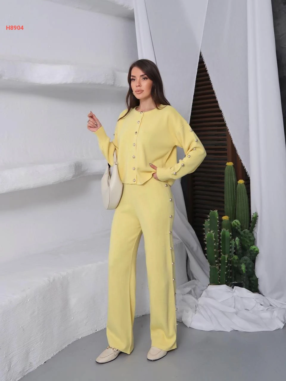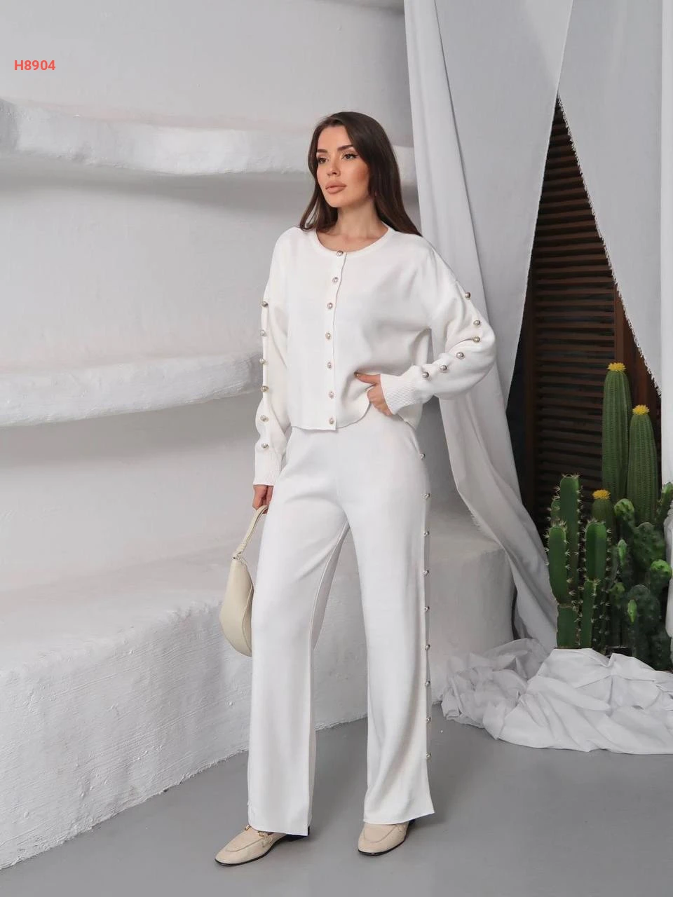 طقم بنطال تريكو وجاكيت بأزرار عالأكمام