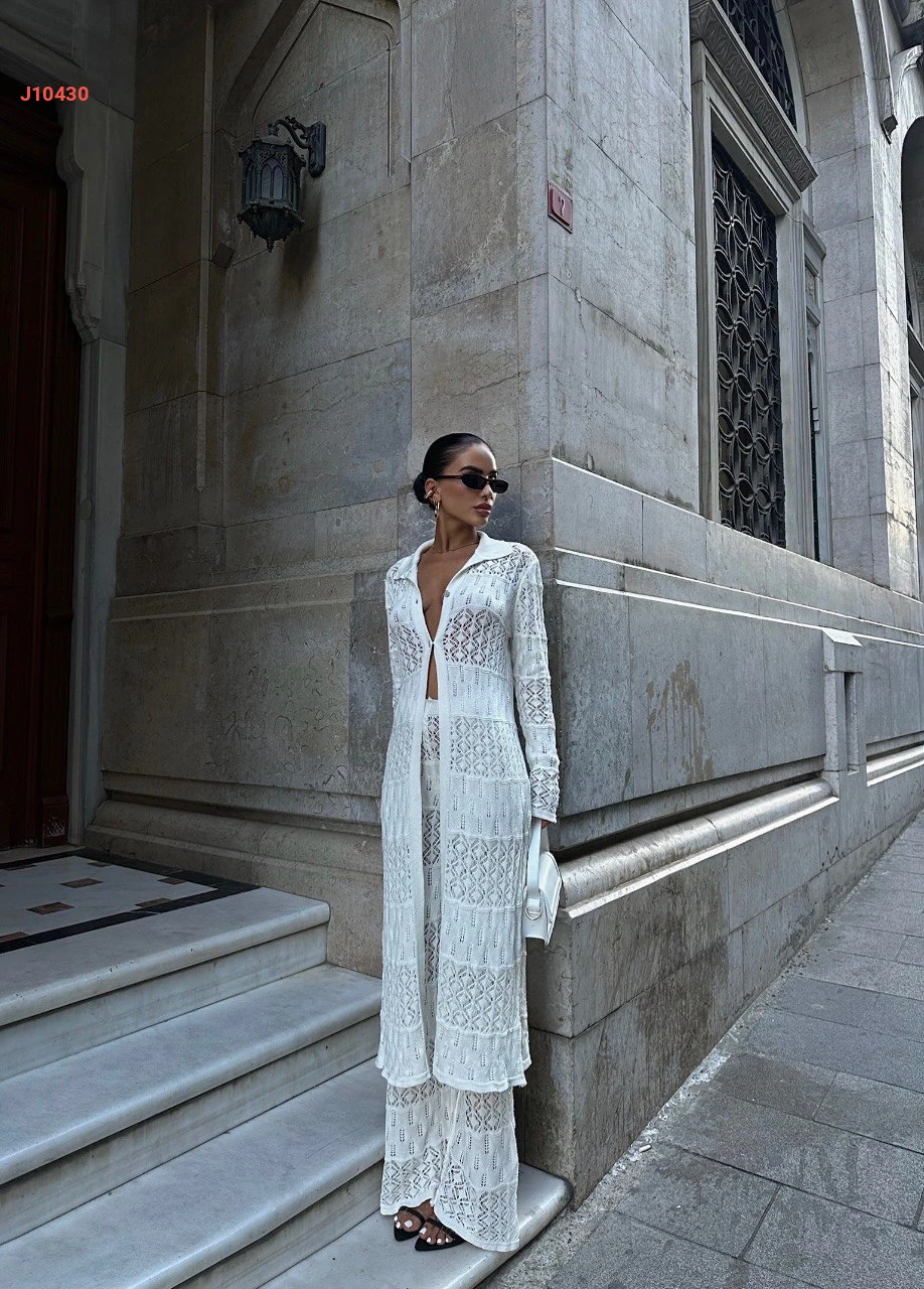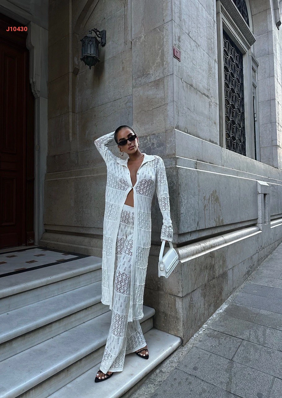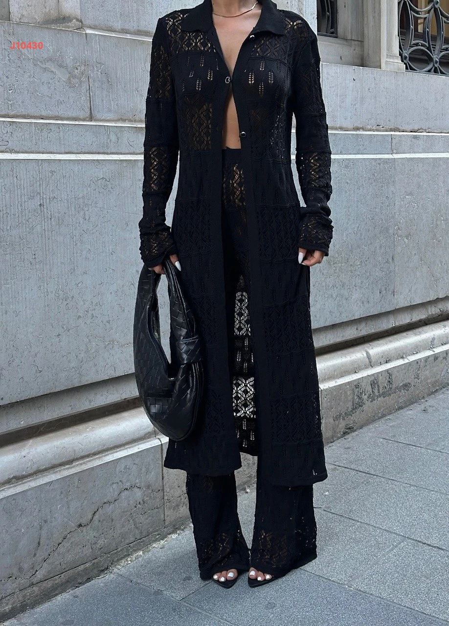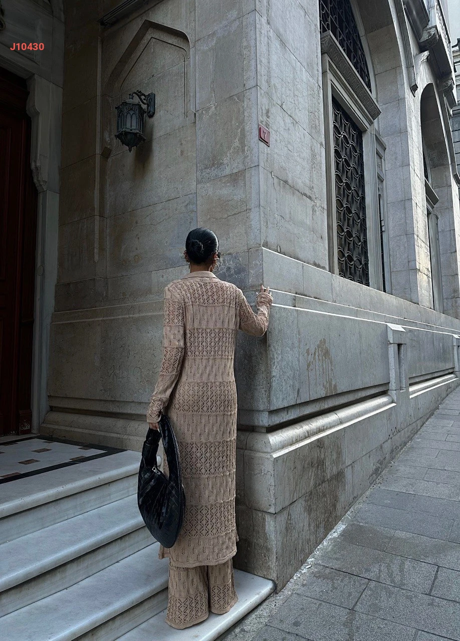 طقم بنطال تريكو وجاكيت طويل مفرغ