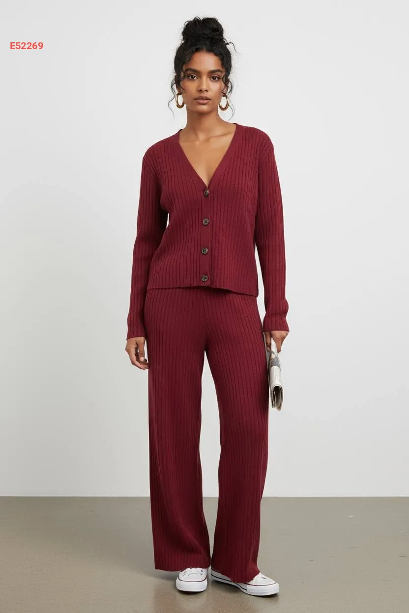 طقم بنطال تريكو مع جاكيت قبة v