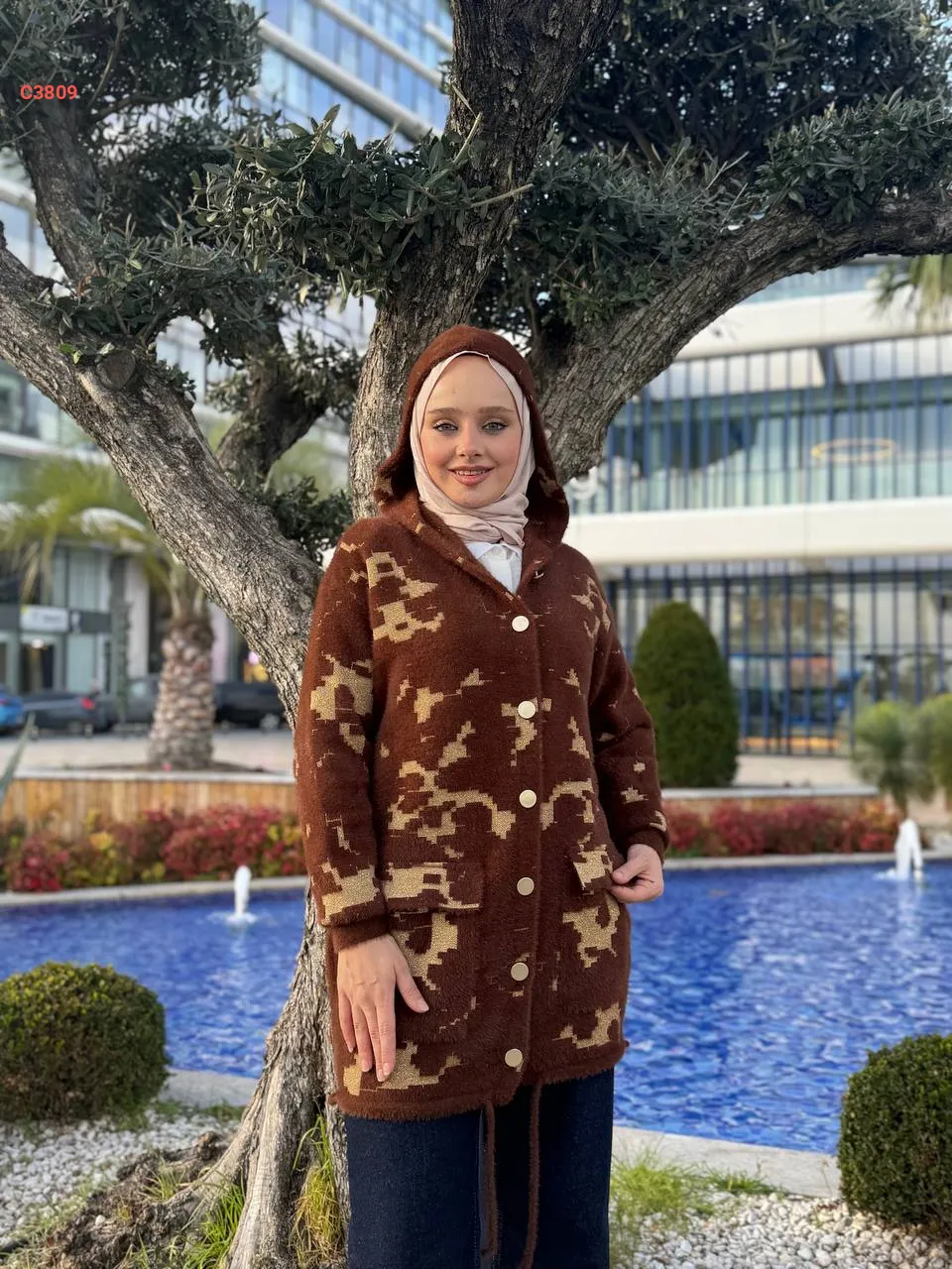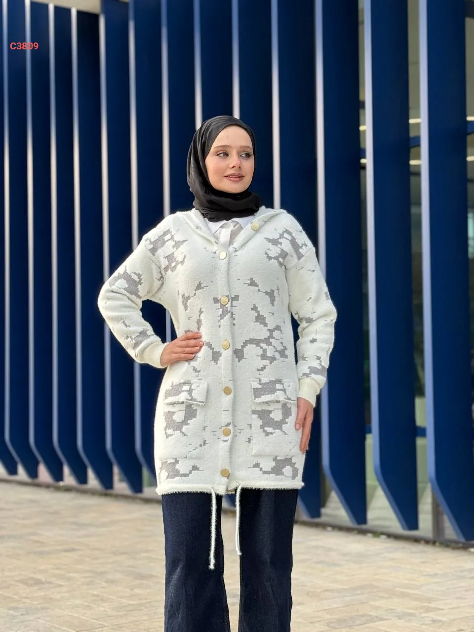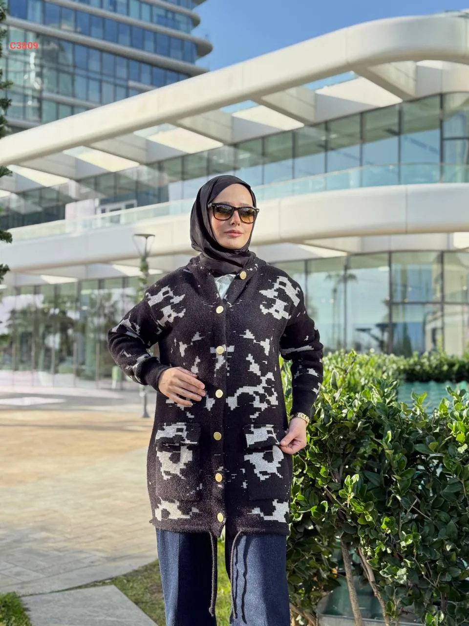 جاكيت تريكو كارو مع سكارف