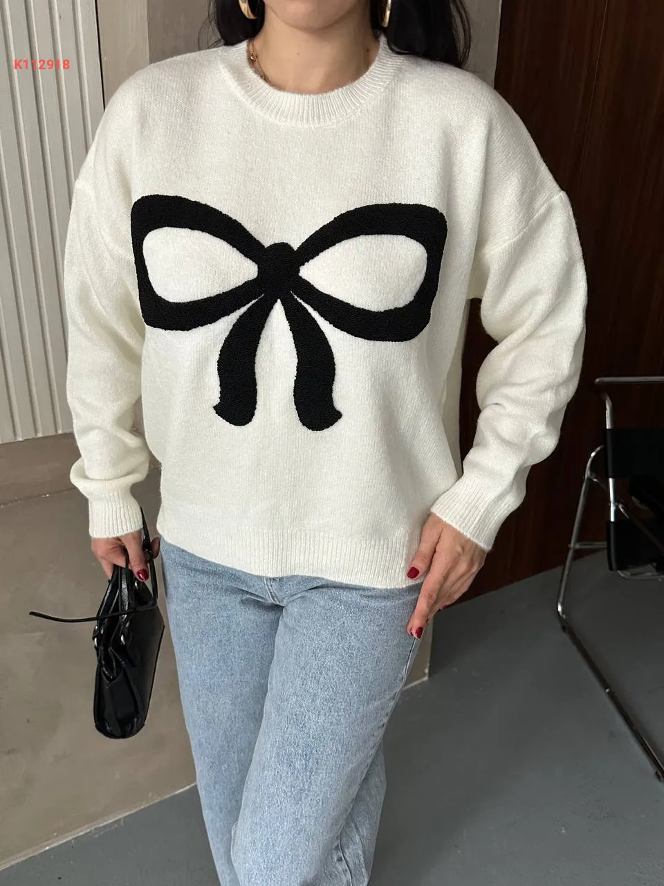 كنزة تريكو مطبعة بفيونكة