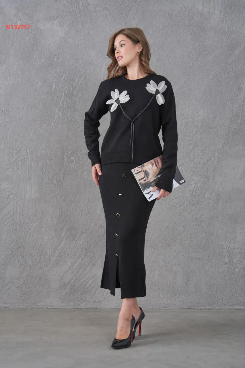طقم تنورة تريكو