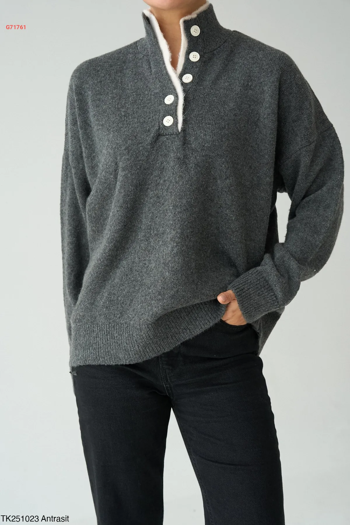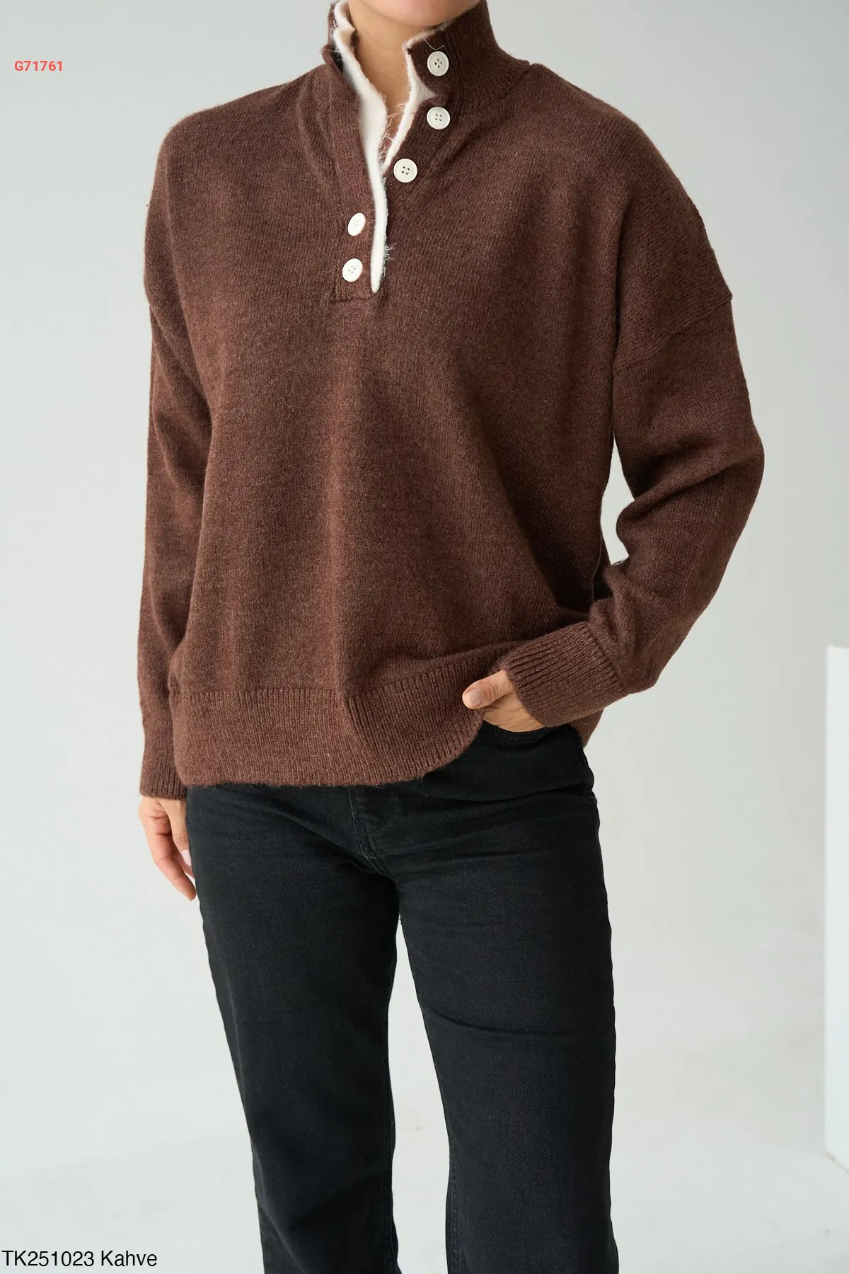 كنزة تريكو بأزرار عالقبة