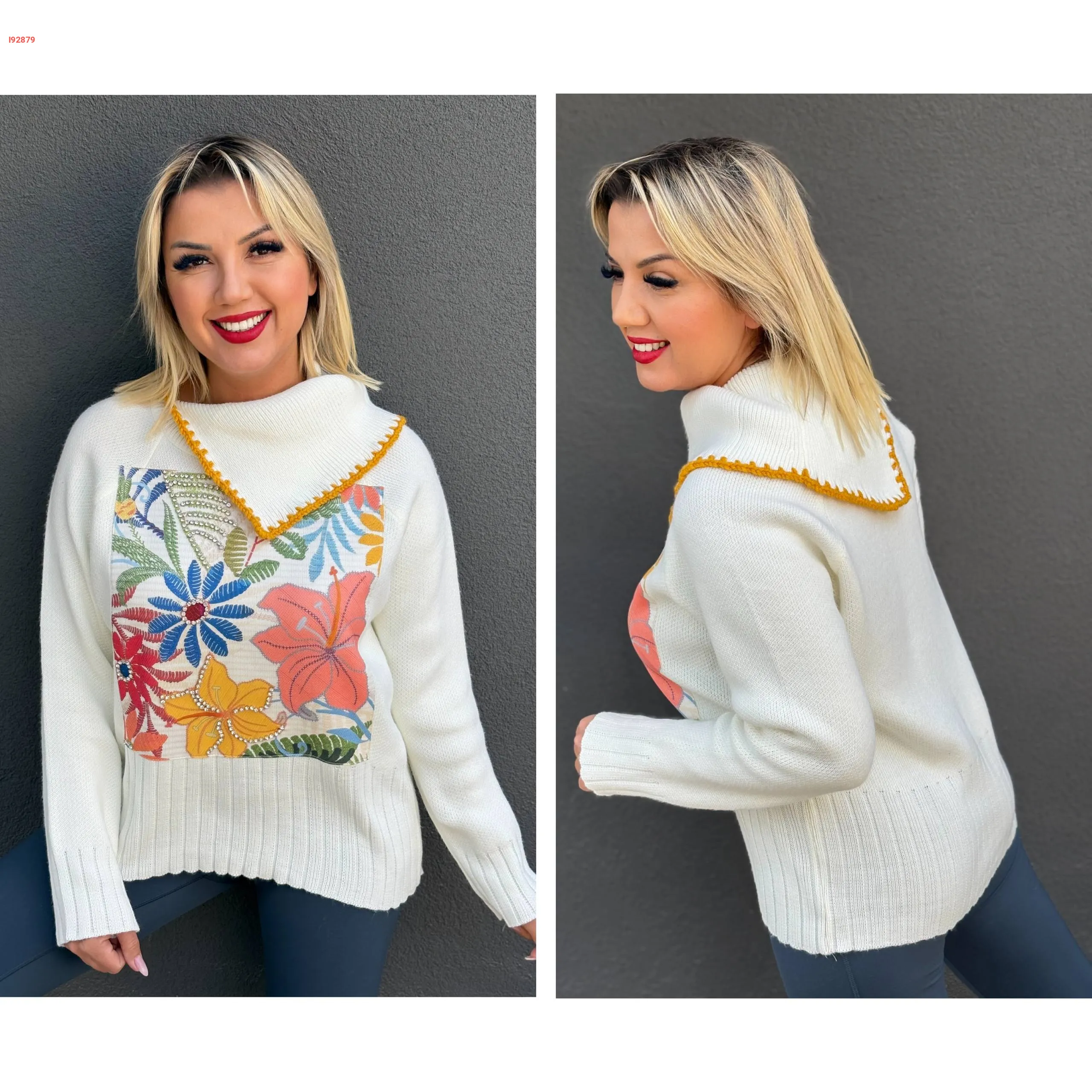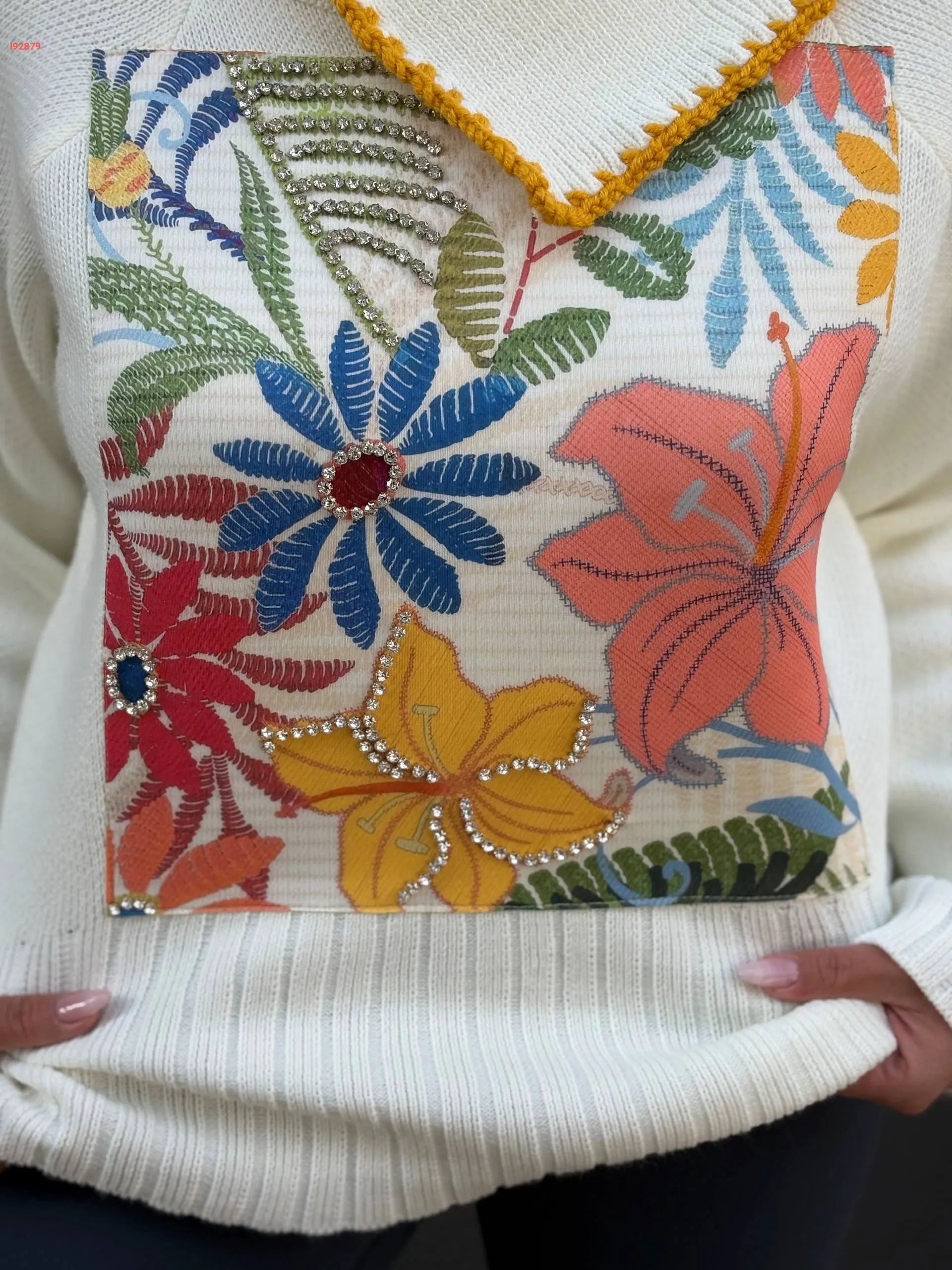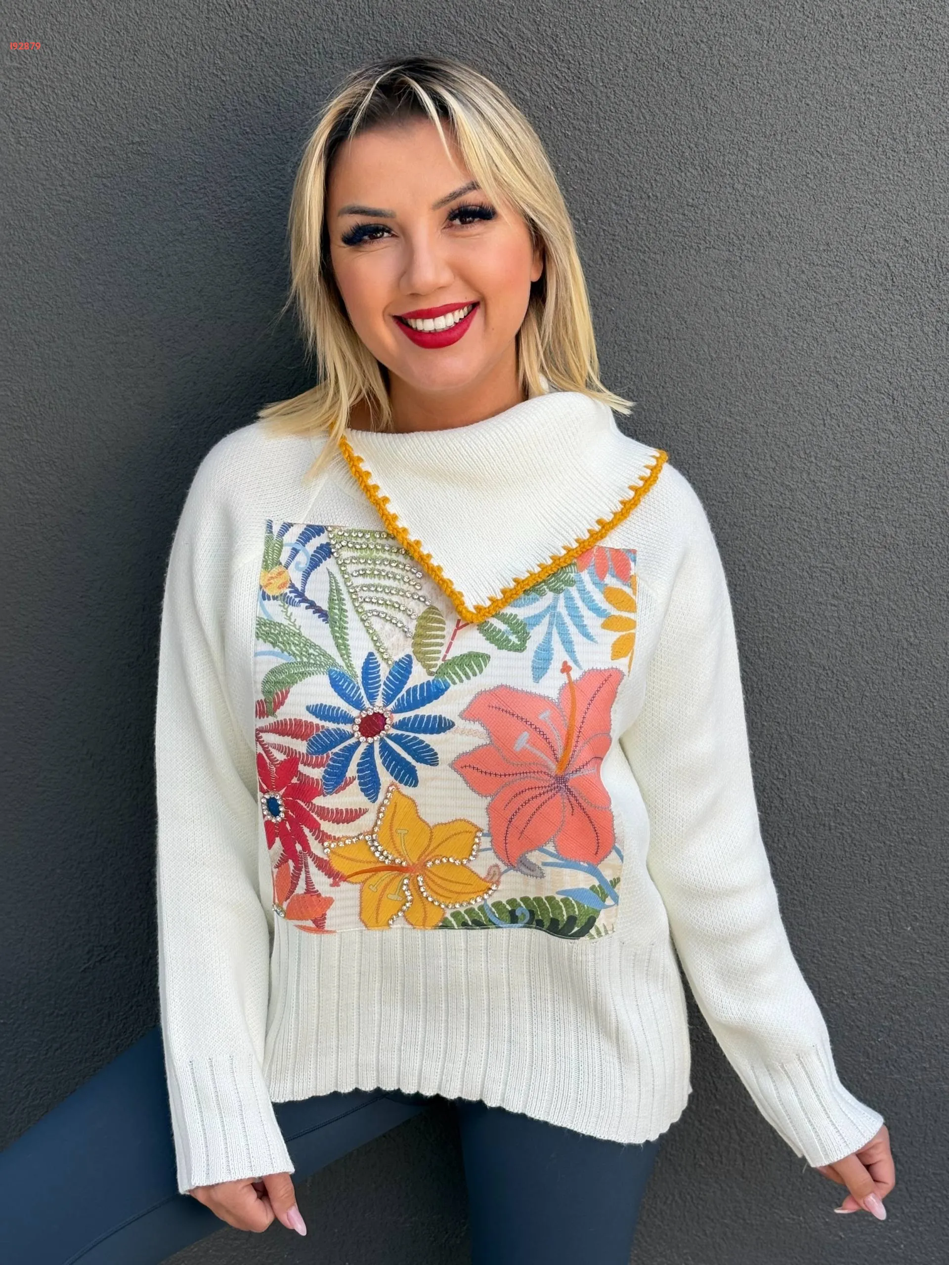كنزة تريكو بتفاصيل مطرزة وأحجار