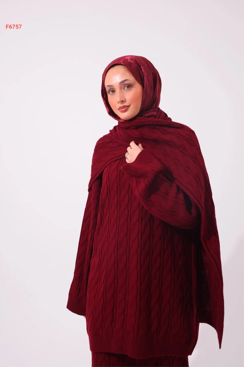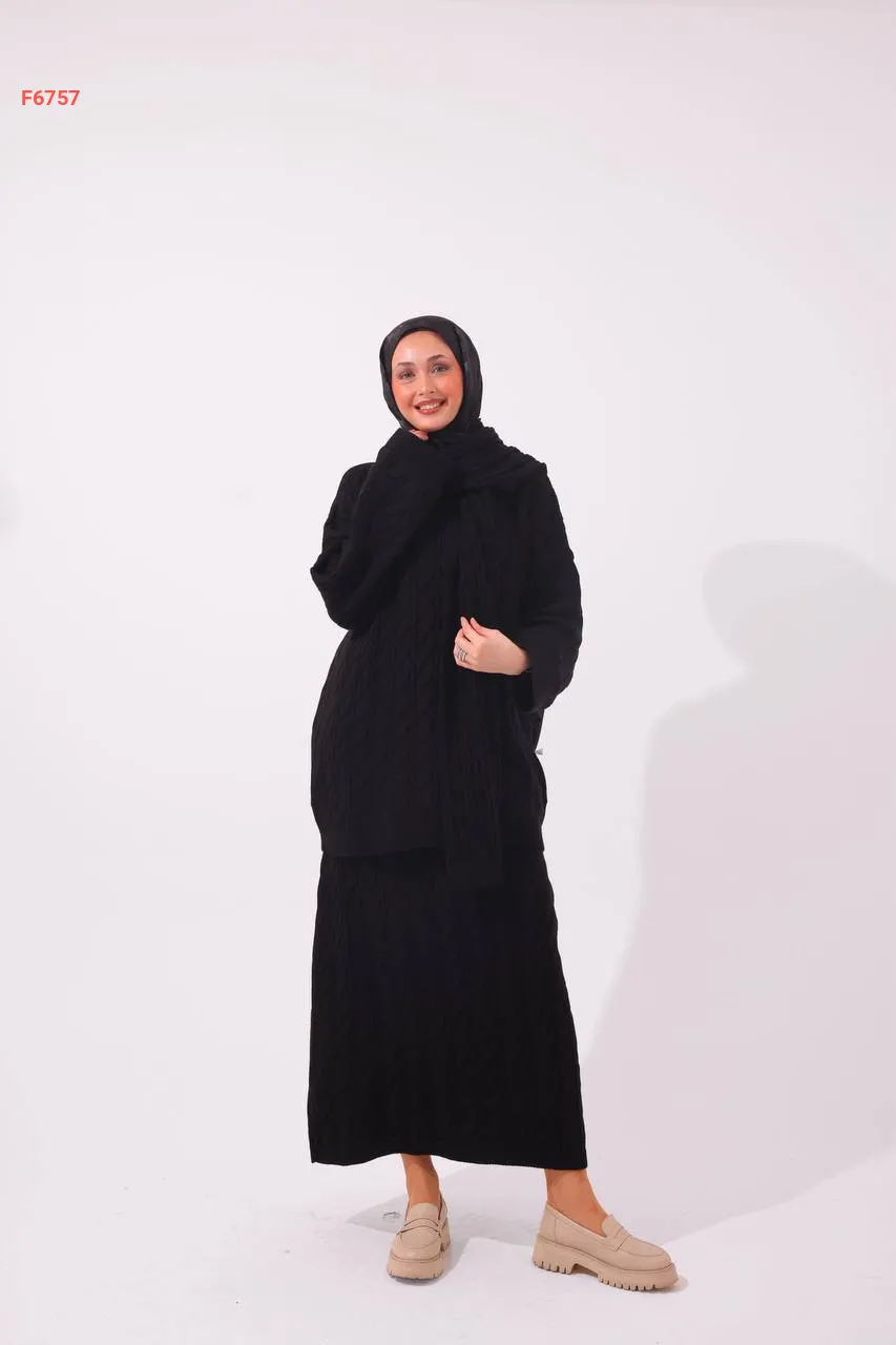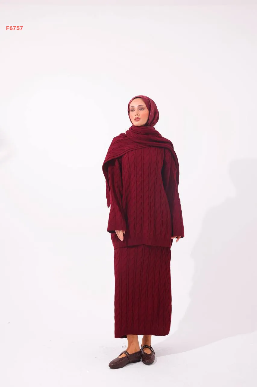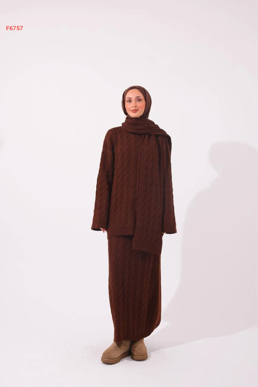 طقم تنورة تريكو مجدول مع سكارف