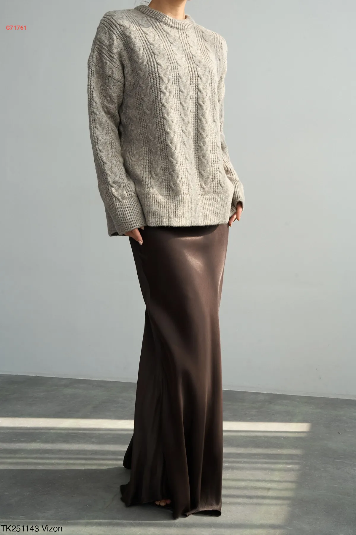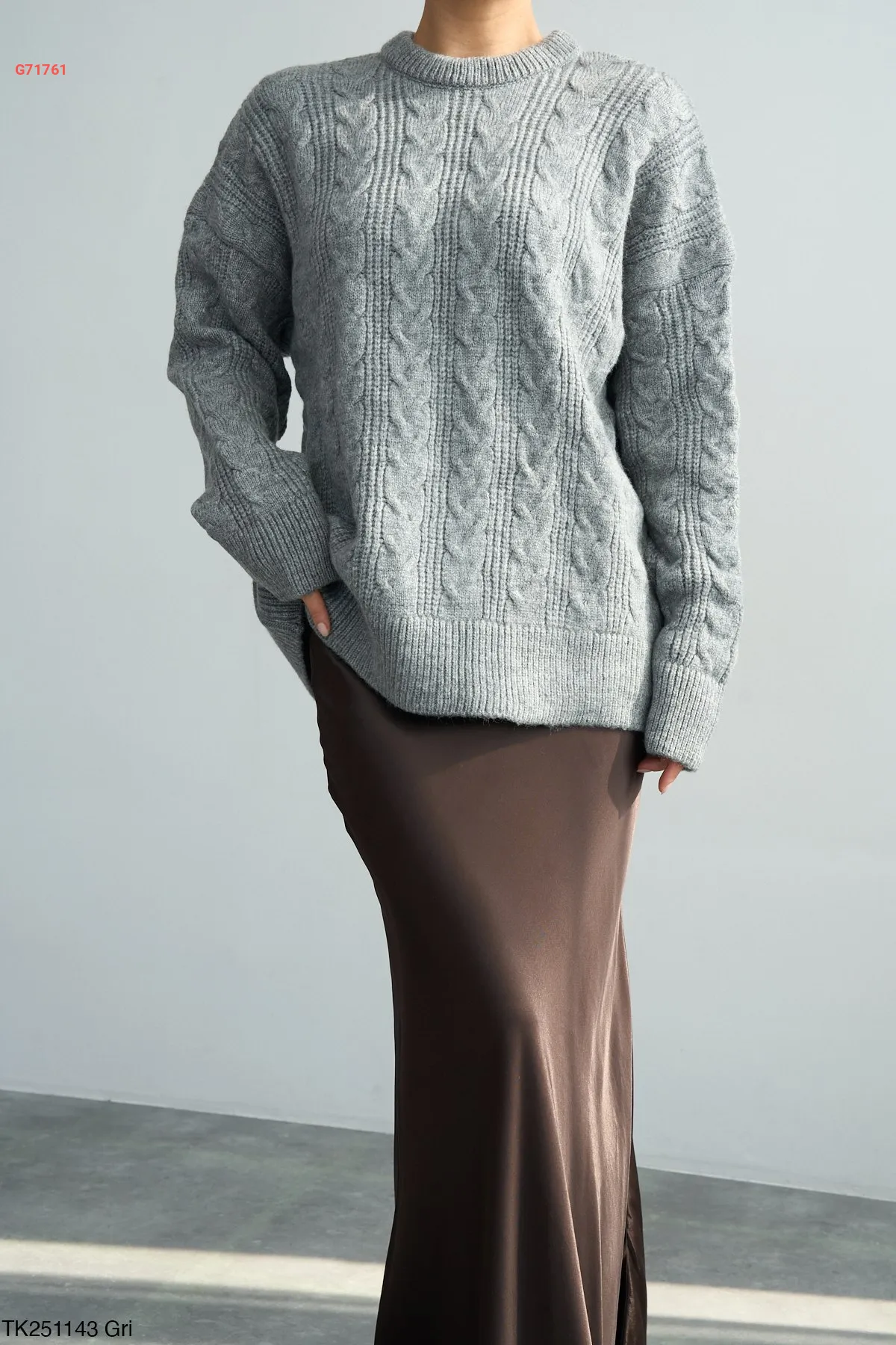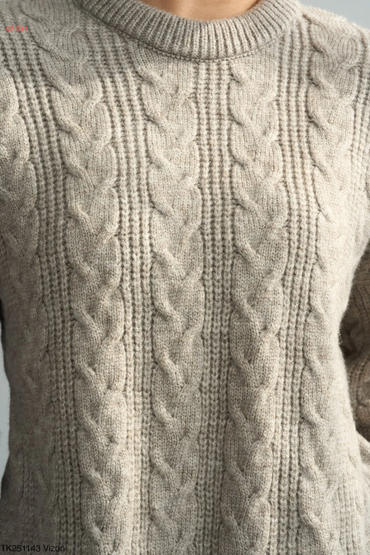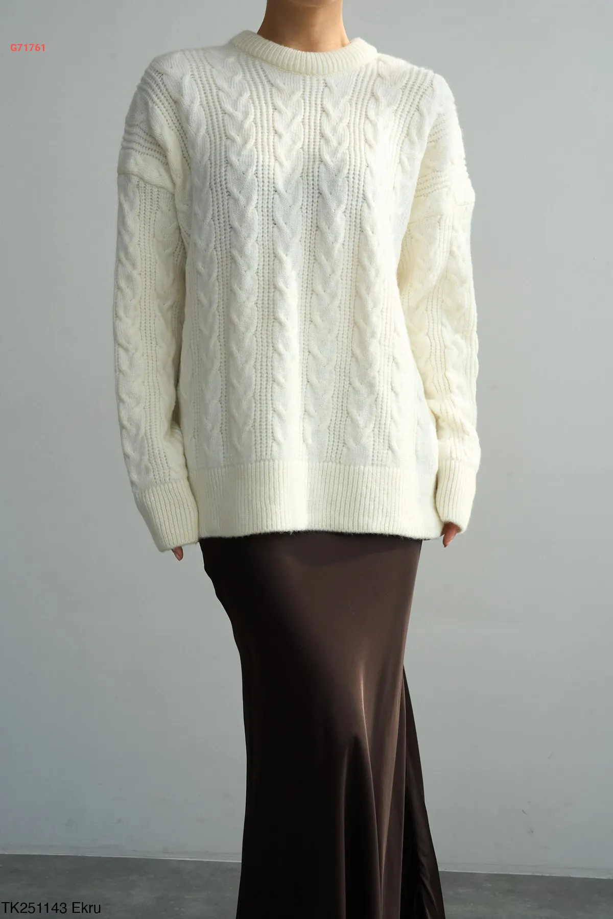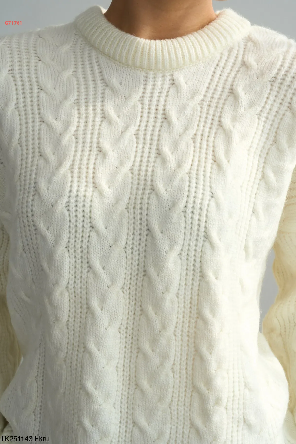 كنزة نص كم صوف مجدول