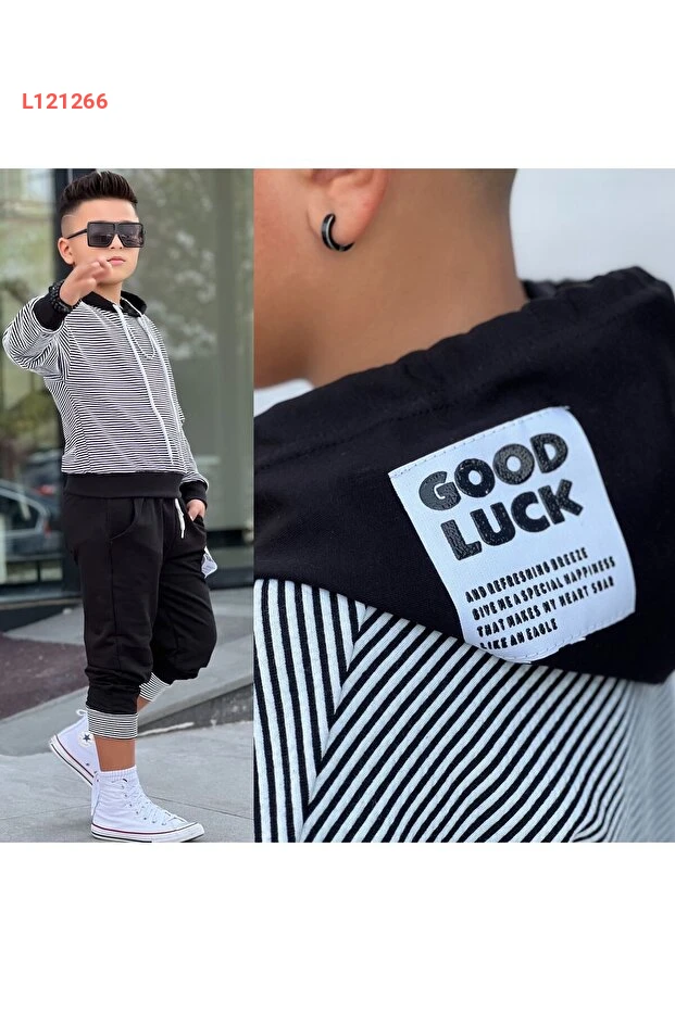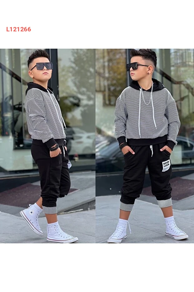 استمتع بأناقة طفلك مع طقم KOKOŞ BEBEK Çizgili Good Luck، الذي يجمع بين الراحة والعصرية! يتضمن طقم مكون من قطعتين بتصميم مخطط عصري، مما يجعله الخيار المثالي للأطفال من عمر 4 إلى 12 عامًا. اجعل كل يوم مليئاً بالمرح والأناقة مع هذا الطقم المميز!
