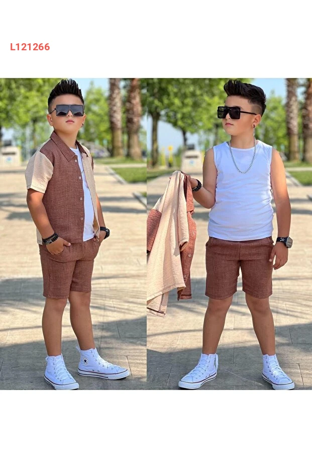 طقم كوكوش بيبي الكتان ثنائي اللون للأطفال من 4 إلى 12 سنة
