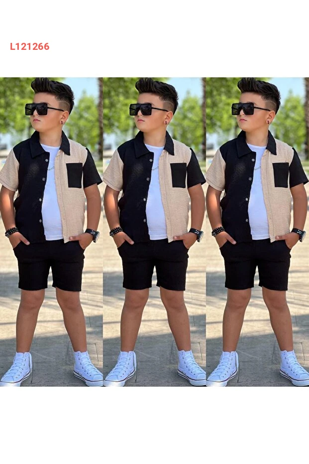 طقم كوتون مزدوج الألوان للأطفال من 4 إلى 12 سنة