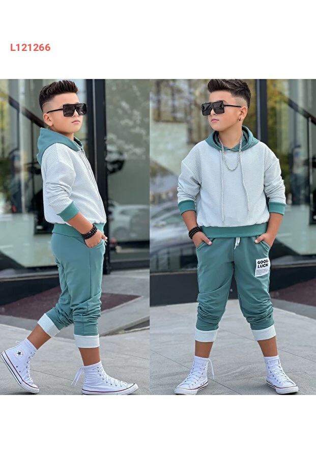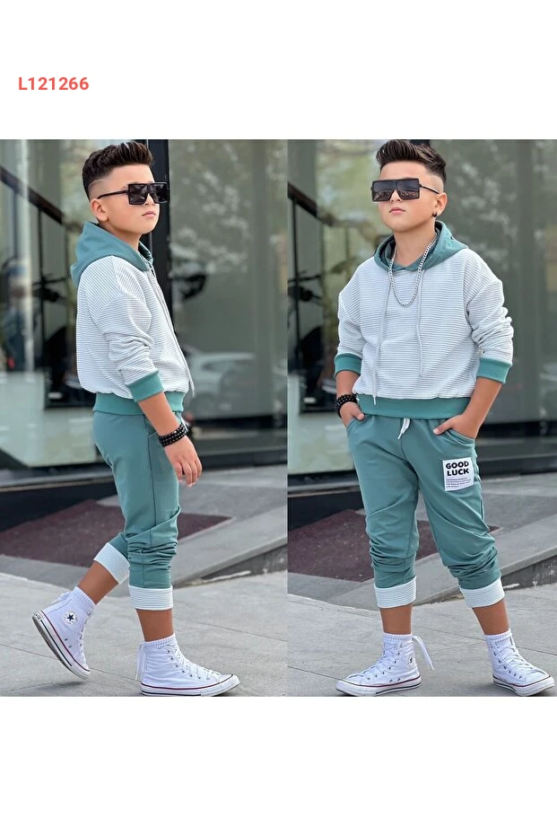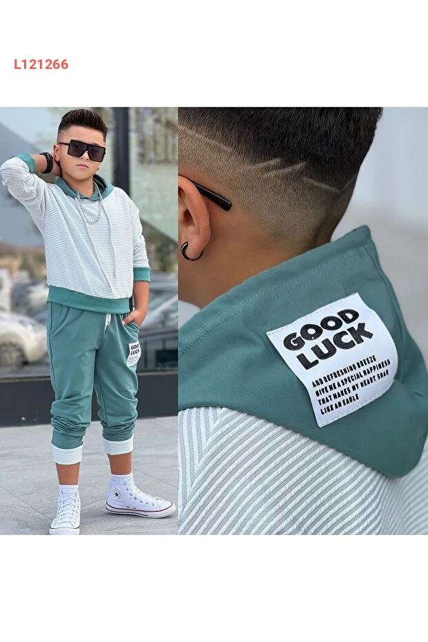 احصل على إطلالة أنيقة ومميزة لطفلك مع طقم KOKOŞ BEBEK ذو الخطوط العصرية الذي يأتي بتصميم رائع يحمل عبارة "Good Luck". يتكون من قطعتين مريحتين تناسب الأطفال من عمر 4 إلى 12 سنة، حيث يجمع بين الجمال والراحة ليضفي لمسة من الجاذبية على مظهرهم اليومي. مثالي للمناسبات اليومية أو النشاطات الخارجية!