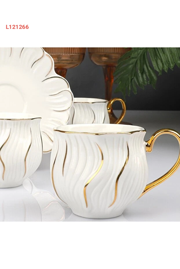 مجموعة فناجين قهوة كوسوفا إيفيمساهاني زين009 البيضاء بتصميم فخم 24 قيراط