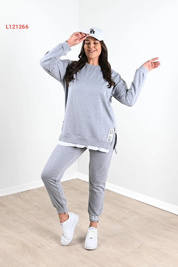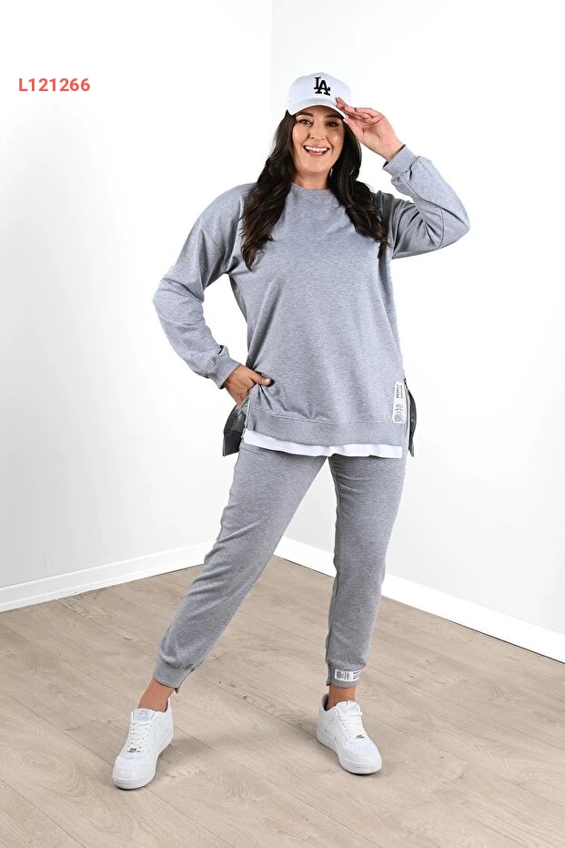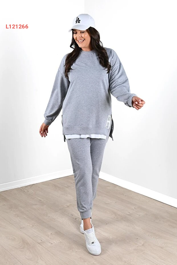 طقم بنطلون رياضي نسائي كبير الحجم بتفاصيل سحاب جانبية من كوزا بوتيك 3613-23