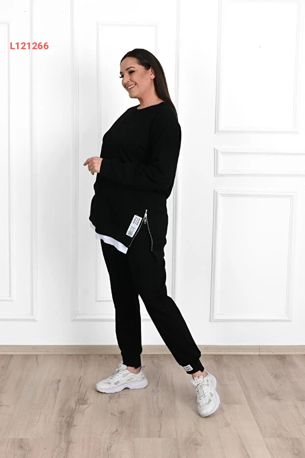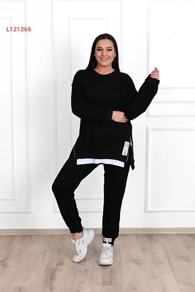 استمتع بأناقة وراحة لا مثيل لهما مع طقم السويت شيرت النسائي الكبير من كوزا بوتيك، الذي يتميز بتفاصيل الفراء الجانبية العصرية. مصمم ليمنحك حرية الحركة ويبرز جمالك، يتمتع هذا الطقم بقصة مريحة تناسب مختلف الأجسام، مما يجعله الخيار المثالي للأيام النشطة أو الاسترخاء في المنزل.