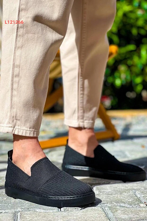 حذاء رياضي يومي للرجال بدون أربطة مرن وخفيف - أسود