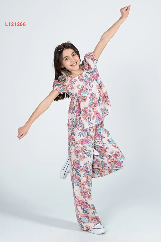 استمتع بأناقة غير محدودة مع طقم Kyron للفتيات، المصنوع من قماش الفسكوز 100% الذي يوفر راحة لا مثيل لها. يتميز بتصميمه الزهري الجذاب، مما يجعله الخيار المثالي لإبراز شخصيتهن المشرقة في أي مناسبة. استمتعي بالحرية في الحركة والأناقة المميزة في كل لحظة!