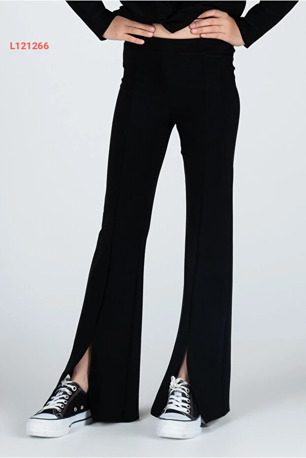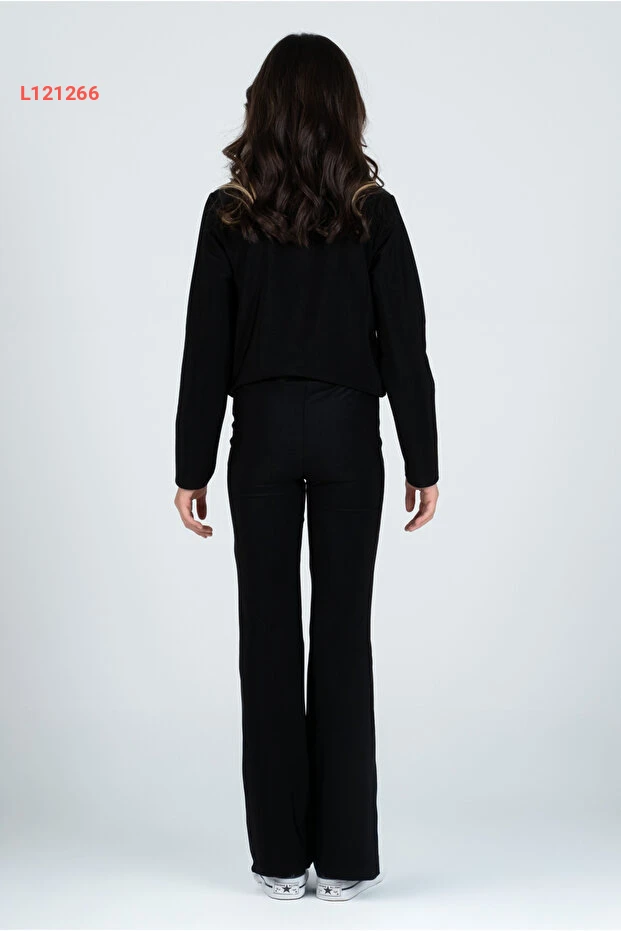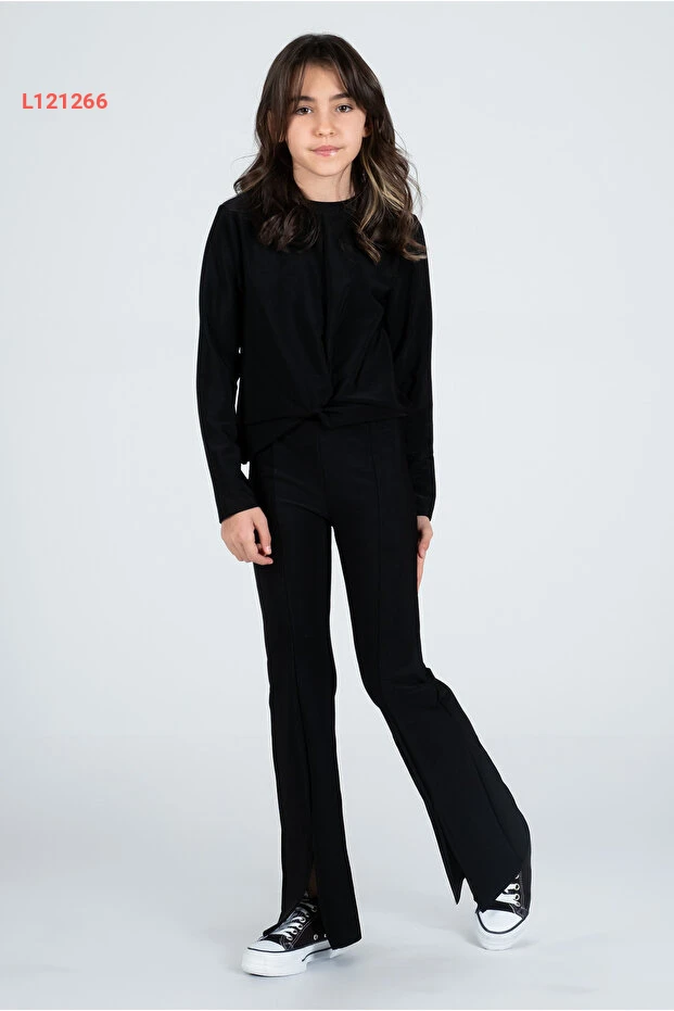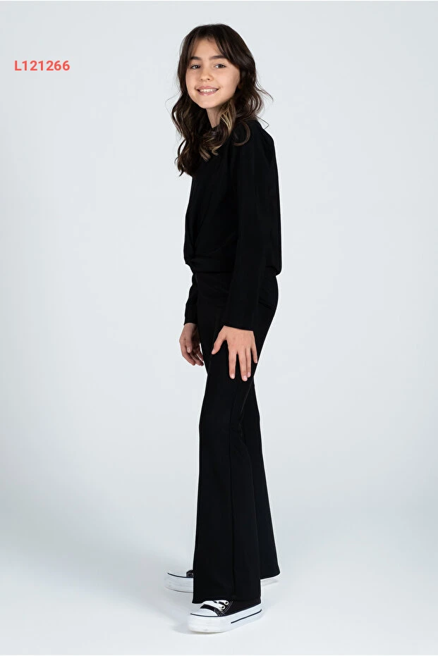 بدلة أنيقة للأطفال مع بلوزة بتفاصيل عقدة وسروال واسع عالِ الخصر - باللون الأسود