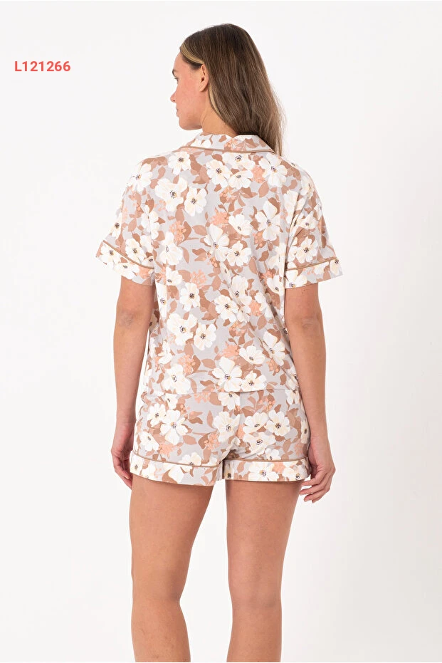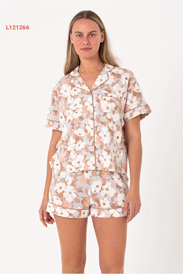 طقم بيجاما نسائي قصير الأكمام من قماش الجيرسيه - أنيق ومريح / خيارات ألوان متنوعة