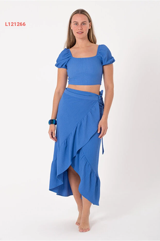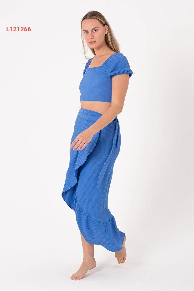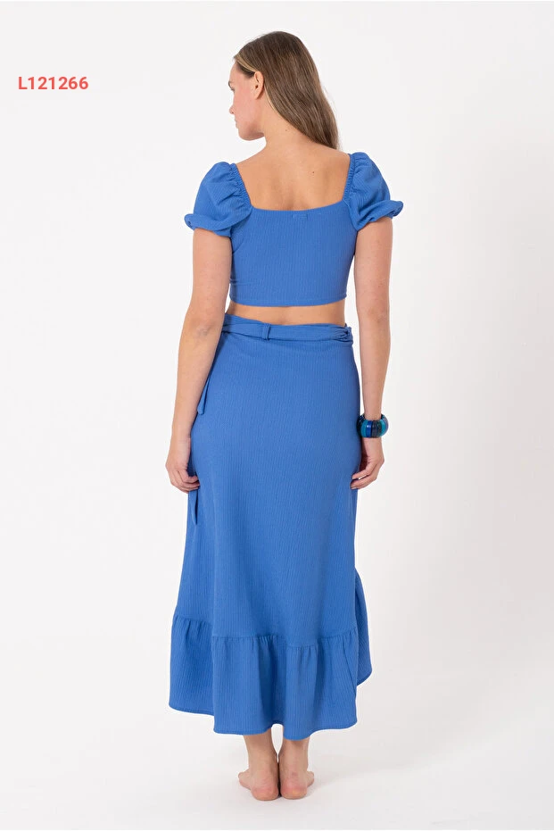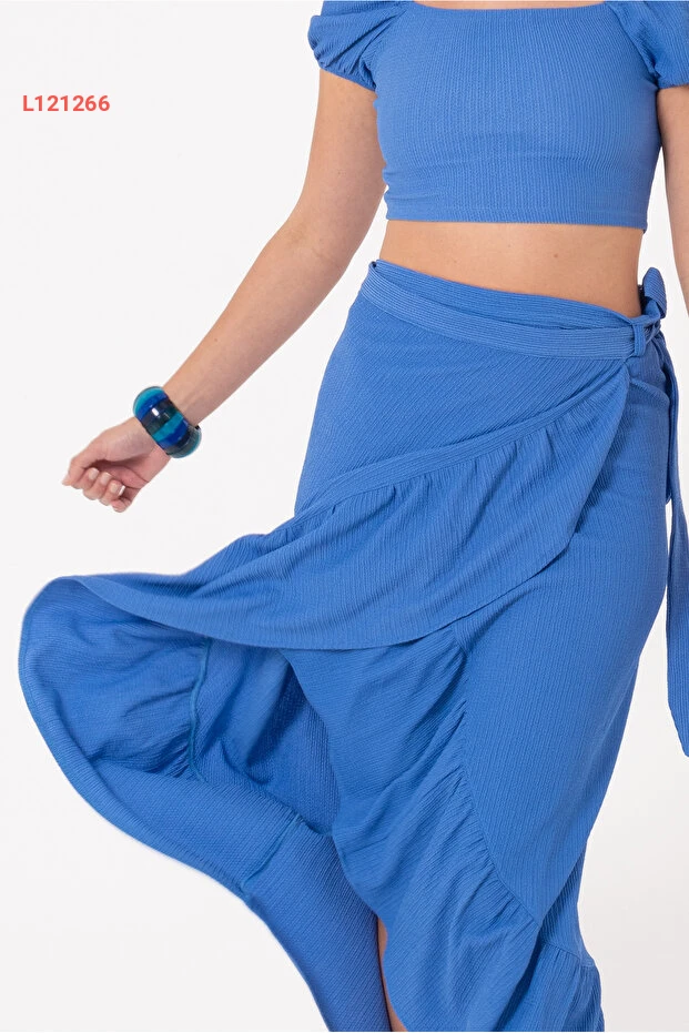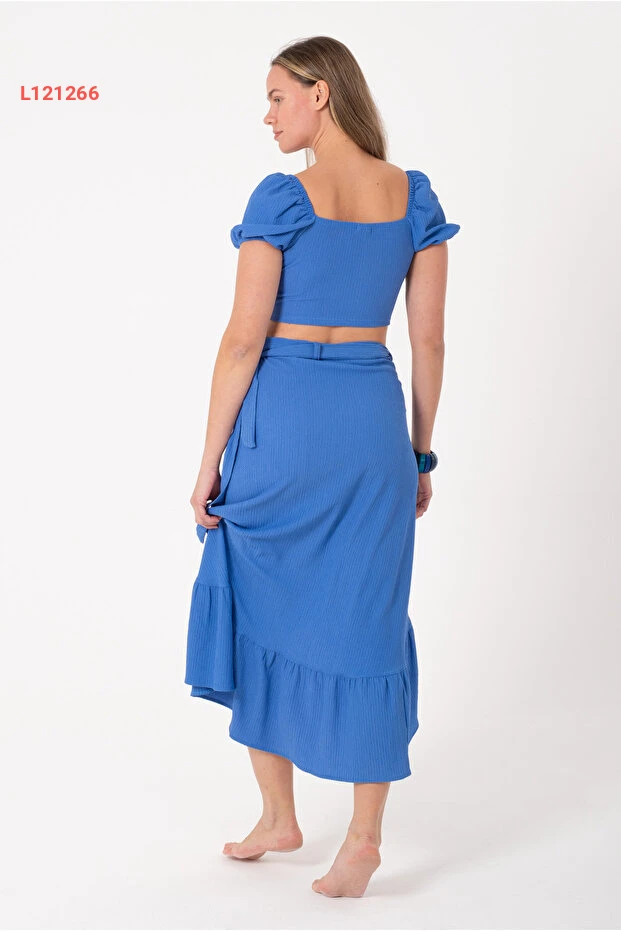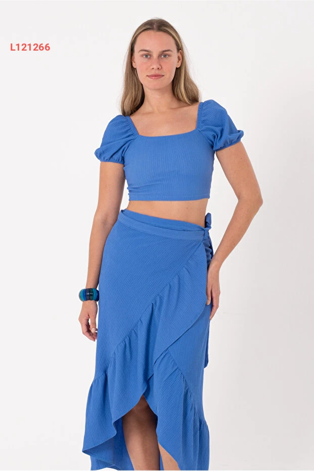 استمتعي بأناقتك مع مجموعة Kyron Kadın Crop Bluz ve Etek Takım باللون الأزرق الساحر. يتميز التصميم العصري بقصّة قصيرة تعزز من جمال القوام، بينما يضمن القماش الخفيف الراحة الكاملة طوال اليوم. ارتدي هذه المجموعة لخلق إطلالة مميزة تجمع بين الأناقة والراحة في كل مناسبة!