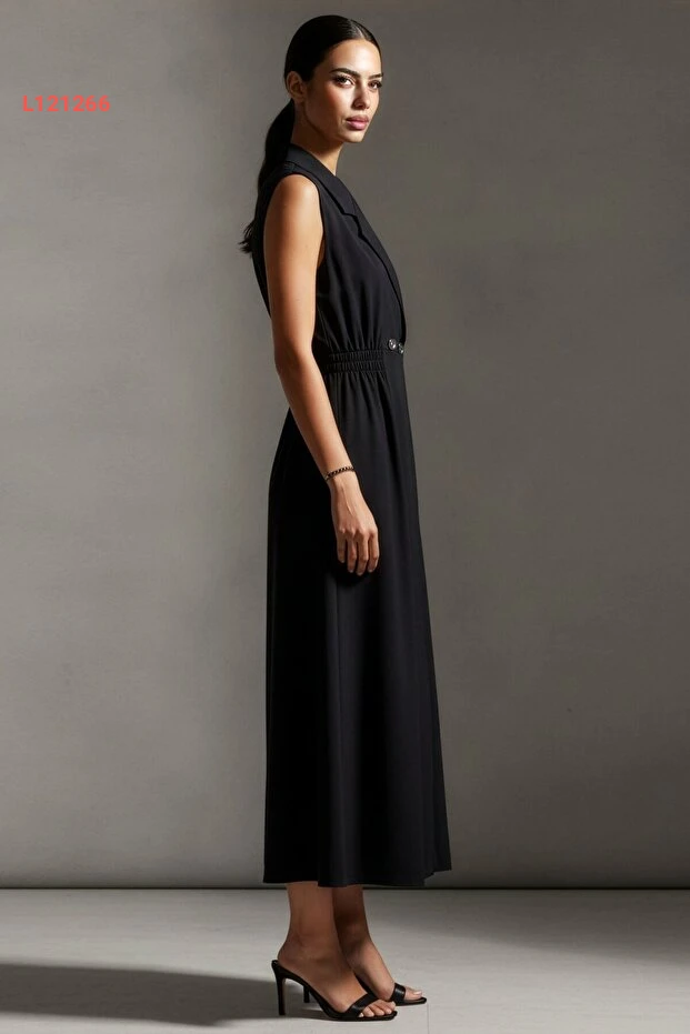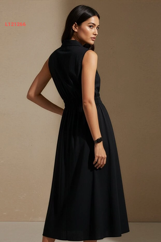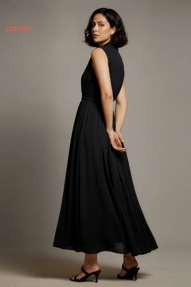 فستان لا بانتي الصيفي الأنيق بلا أكمام بلون الأسود باقتطاع جانبي