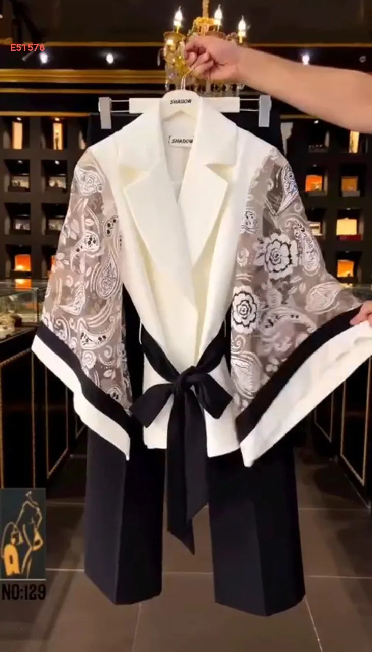iki lı takım Dantel kollu $🔥🔥🔥طقم قطعتين كم دانتيل مع شك Code 1617