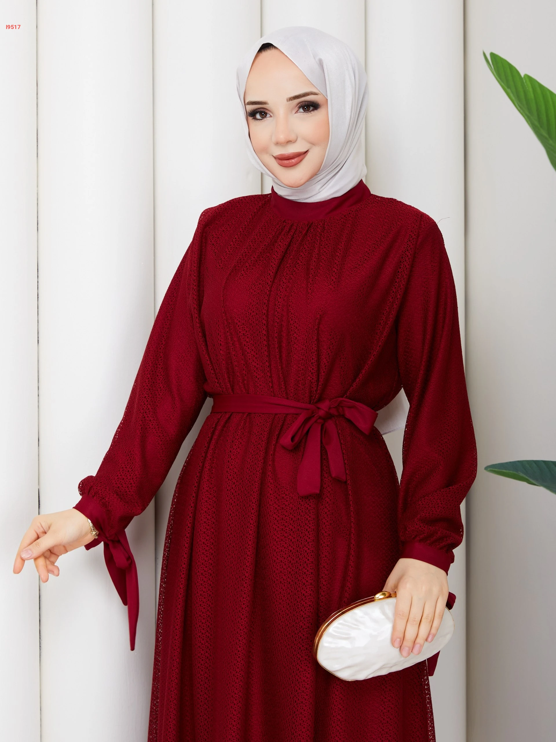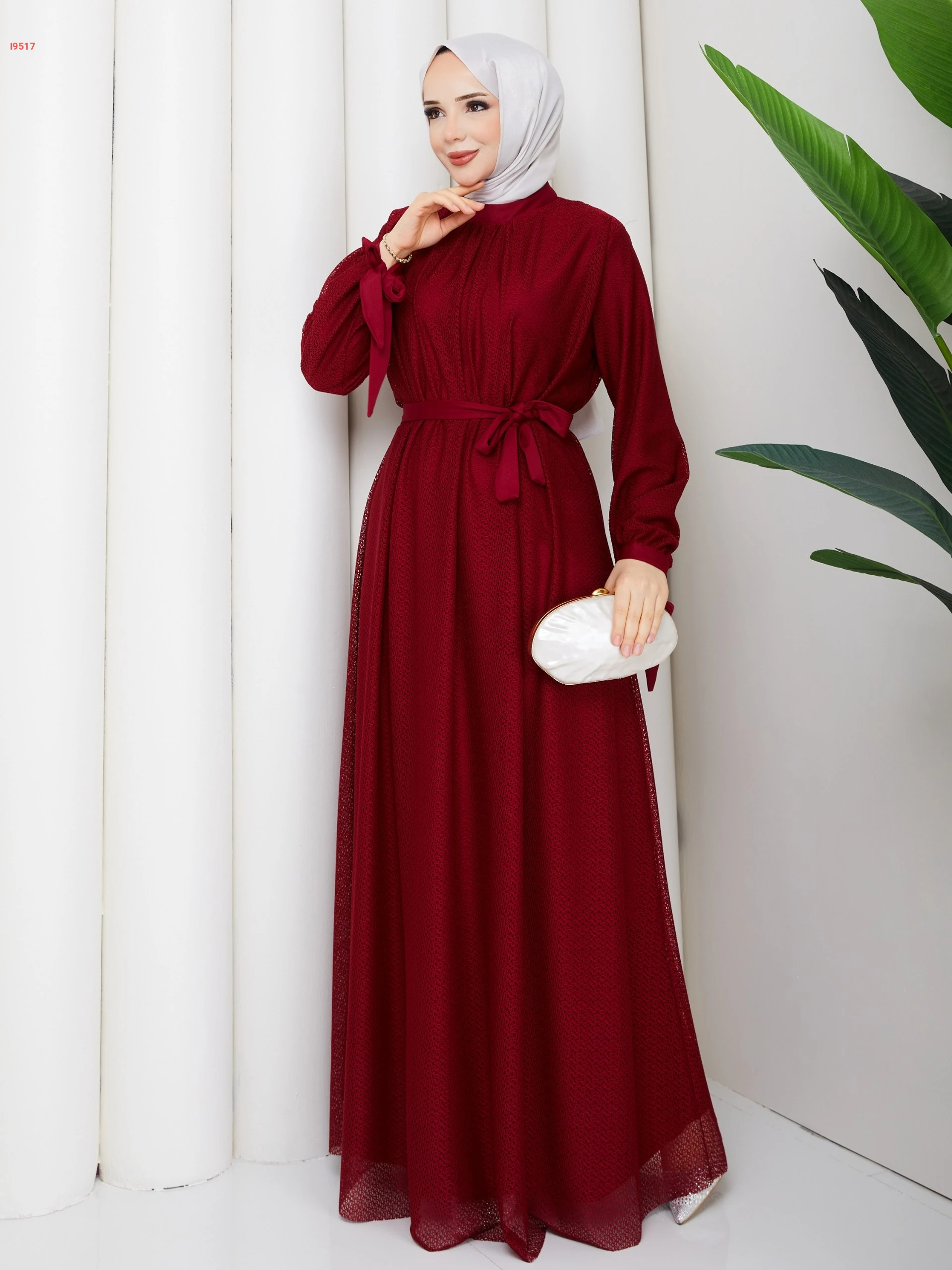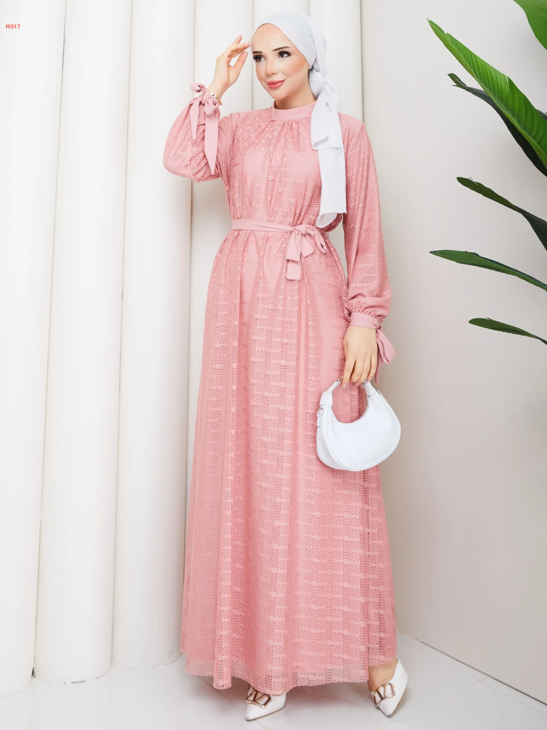 فستان دانتيل مبطن بزنار وربطات عالكم