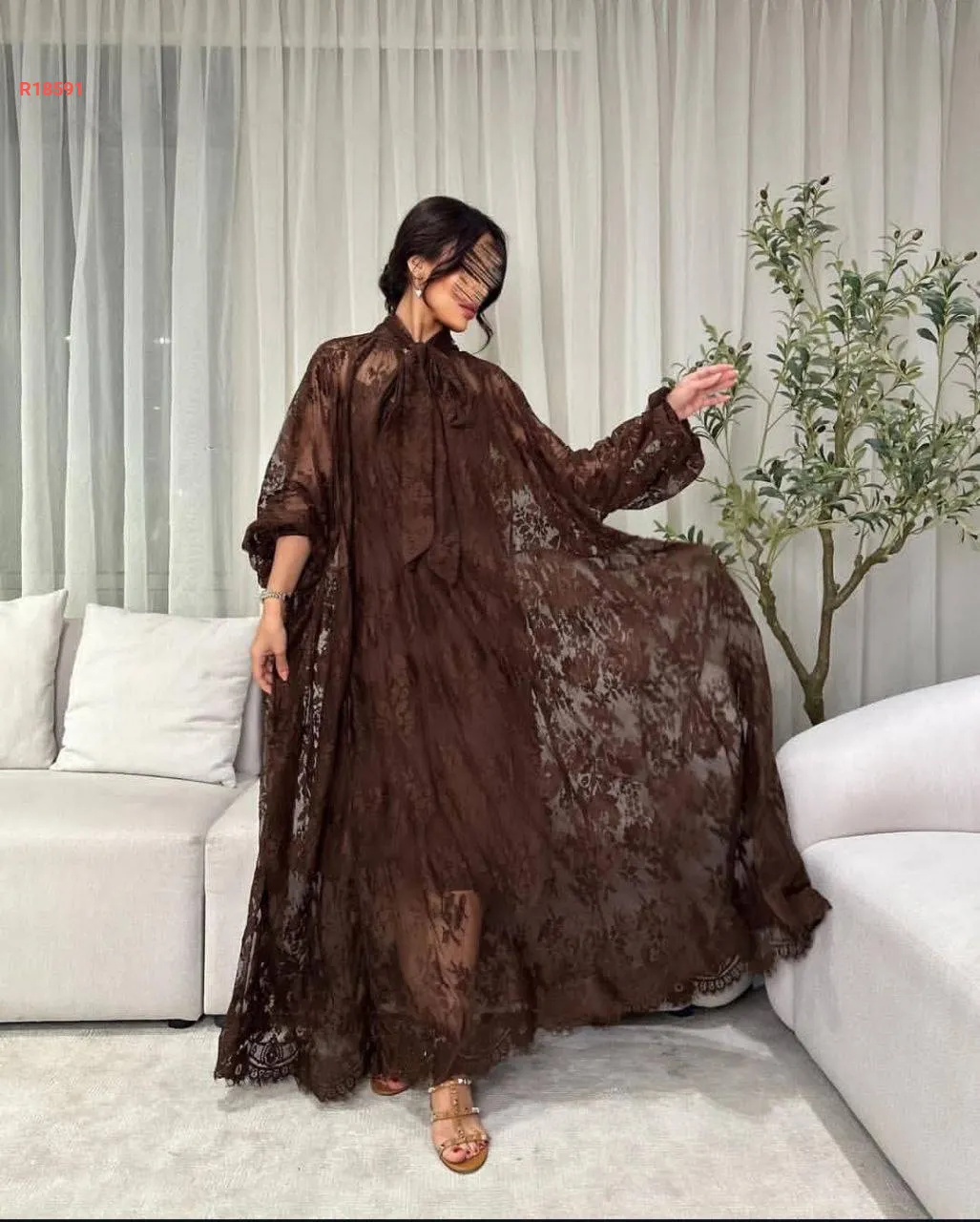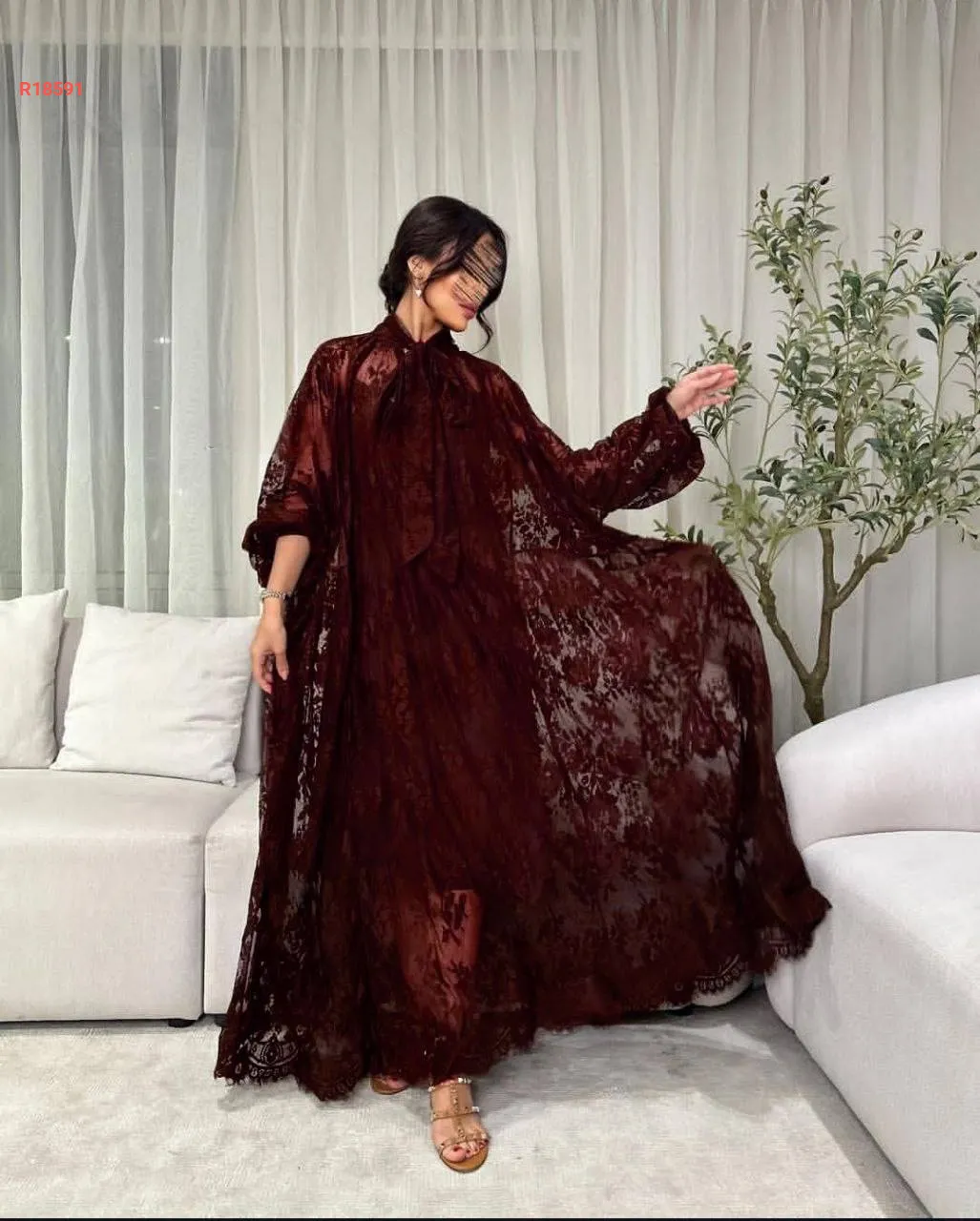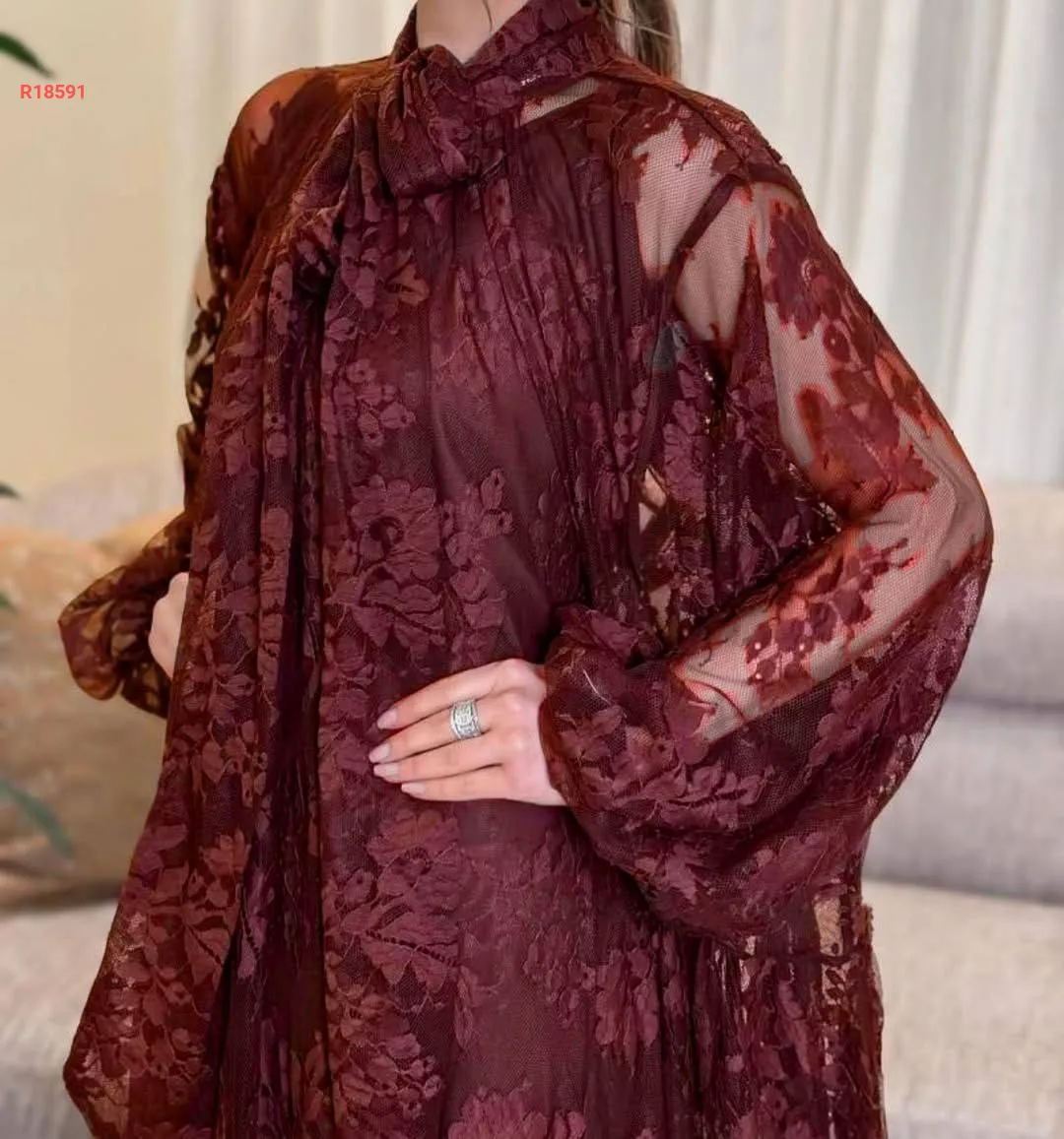 فستان دانتيل بربطة علوية